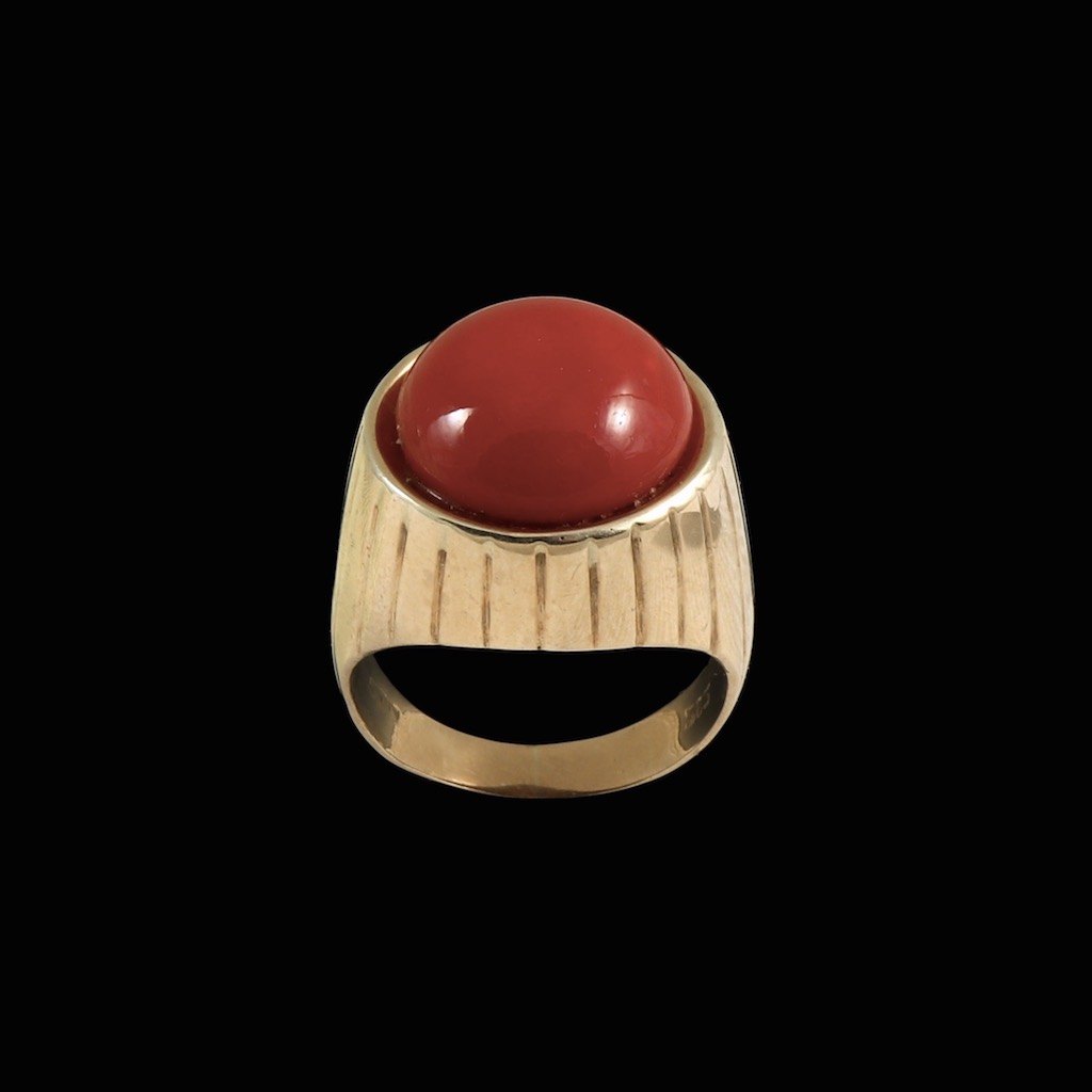 Ring i 14k guld med koral.