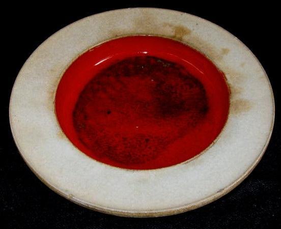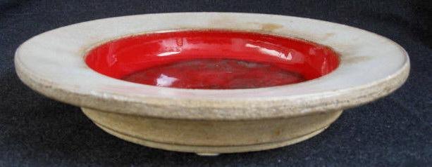Herman A. Kähler fad, udarbejdet af Nils Kähler. 20. årh. Næstved, Danmark. Lertøj med rød glasur. Dia.: 26 cm. Signeret.: HAK, Nils, Danmark