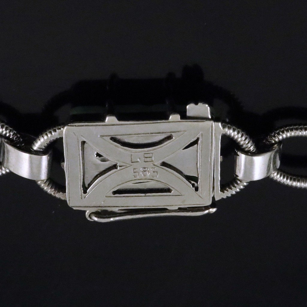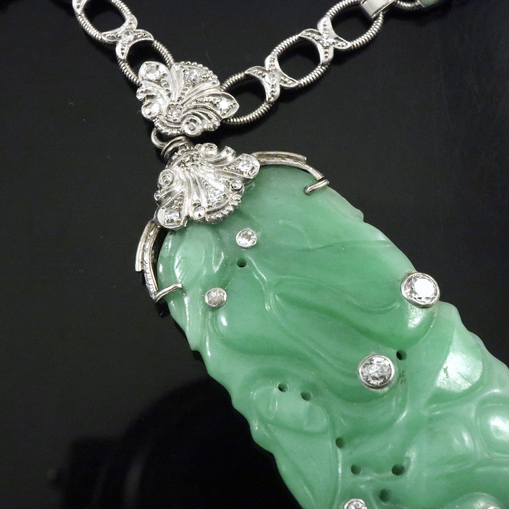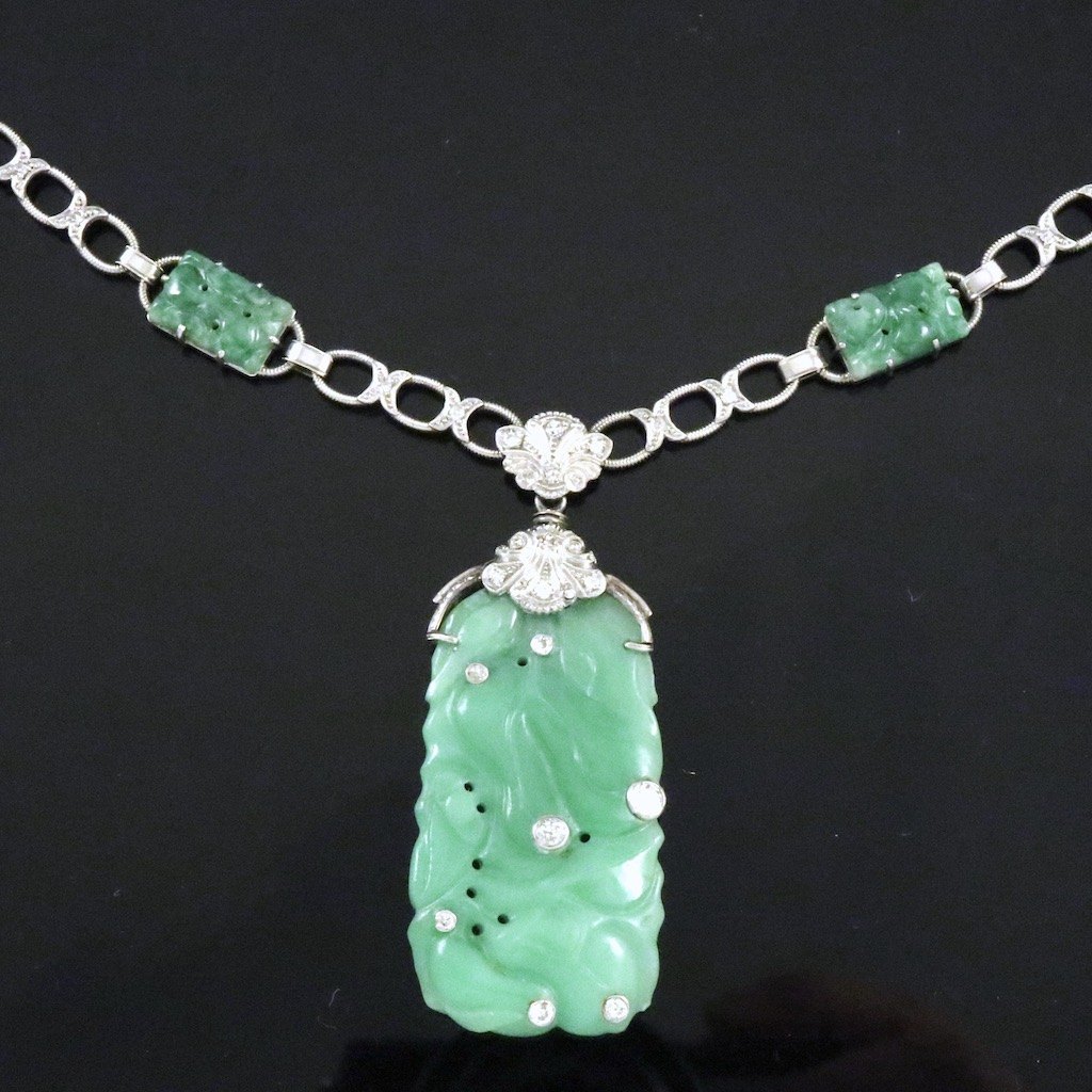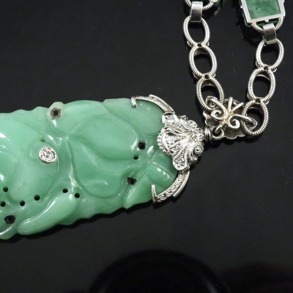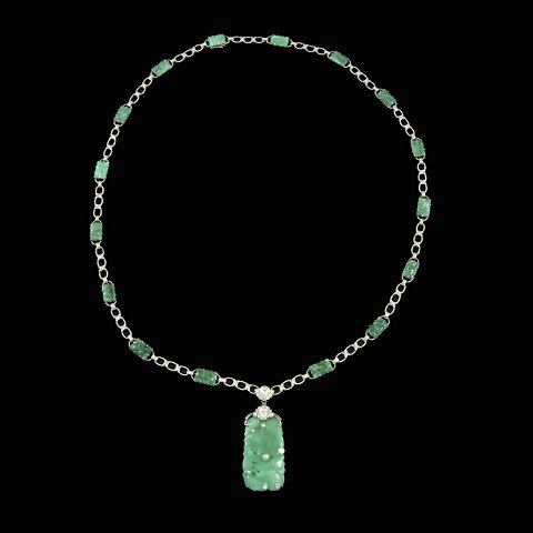 Halskæde i 14k hvidguld med Jade og diamanter.