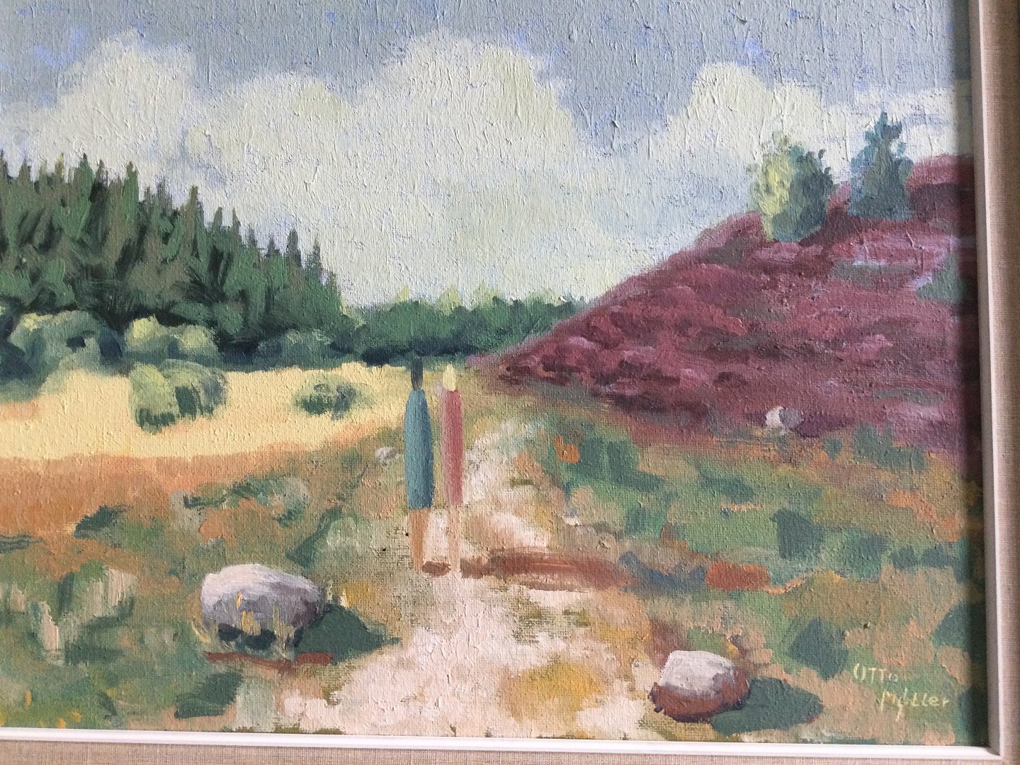 Maleri af Otto Møller - 2 personer på heden med lyngbakker.