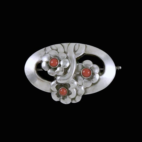 Georg Jensen. 830s Silver Brooch with Coral #28.