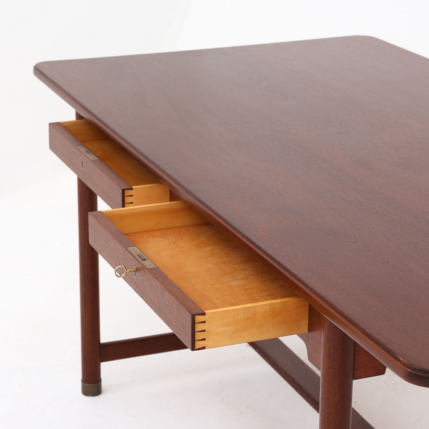 'Partners Desk' skrivebord i mahogni med fire skuffer, profileret kant og sko af messing. Designet i 1935 og vist på Københavns Snedkerlaugs Møbeludstilling i 1938. Dette bord blev udført til udstillingen 'Dansk Kunsthaandværk' på Nationalmuseet i Stockholm i 1942 og kommer herfra.
