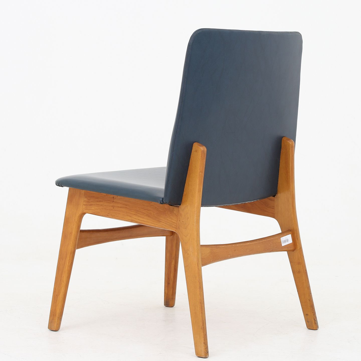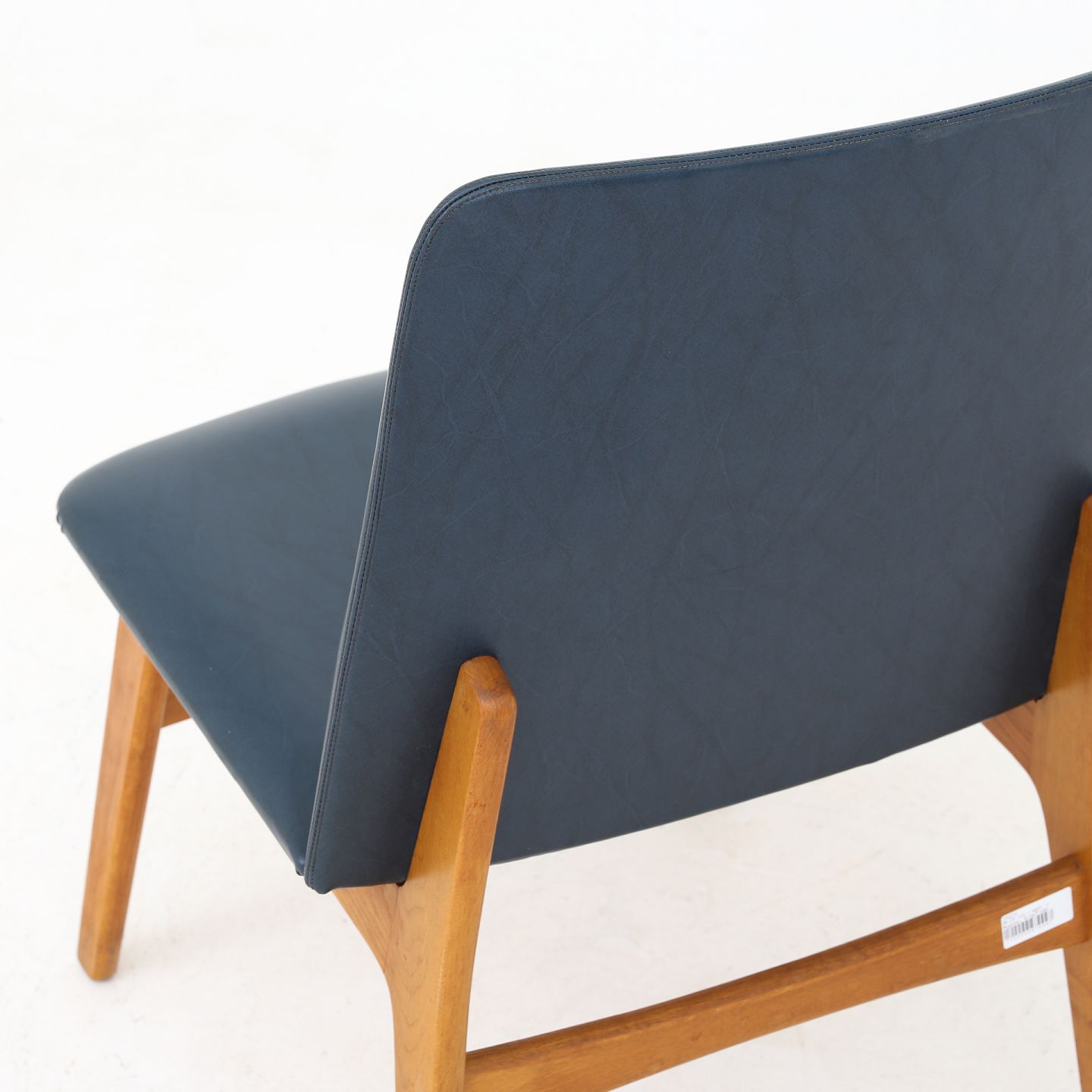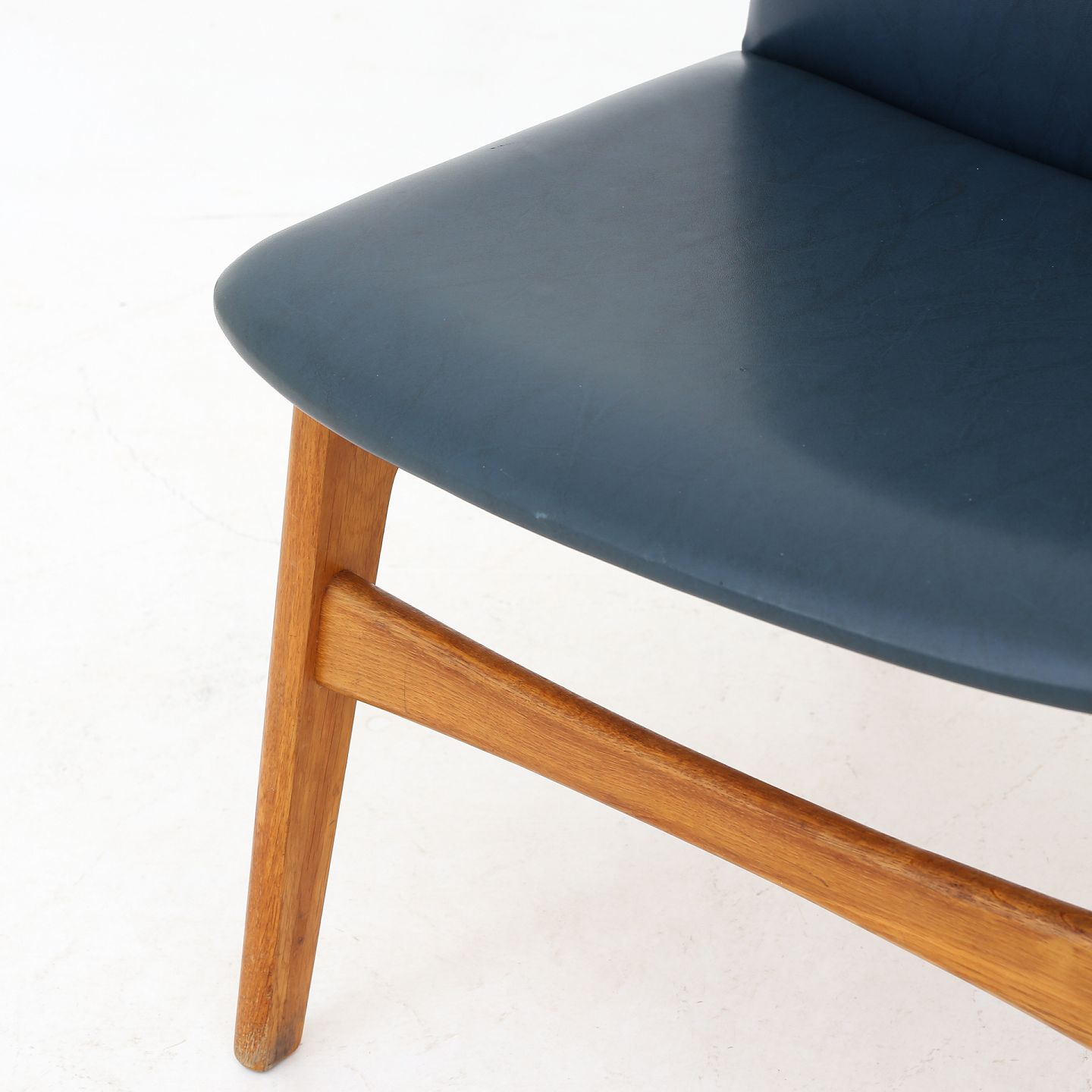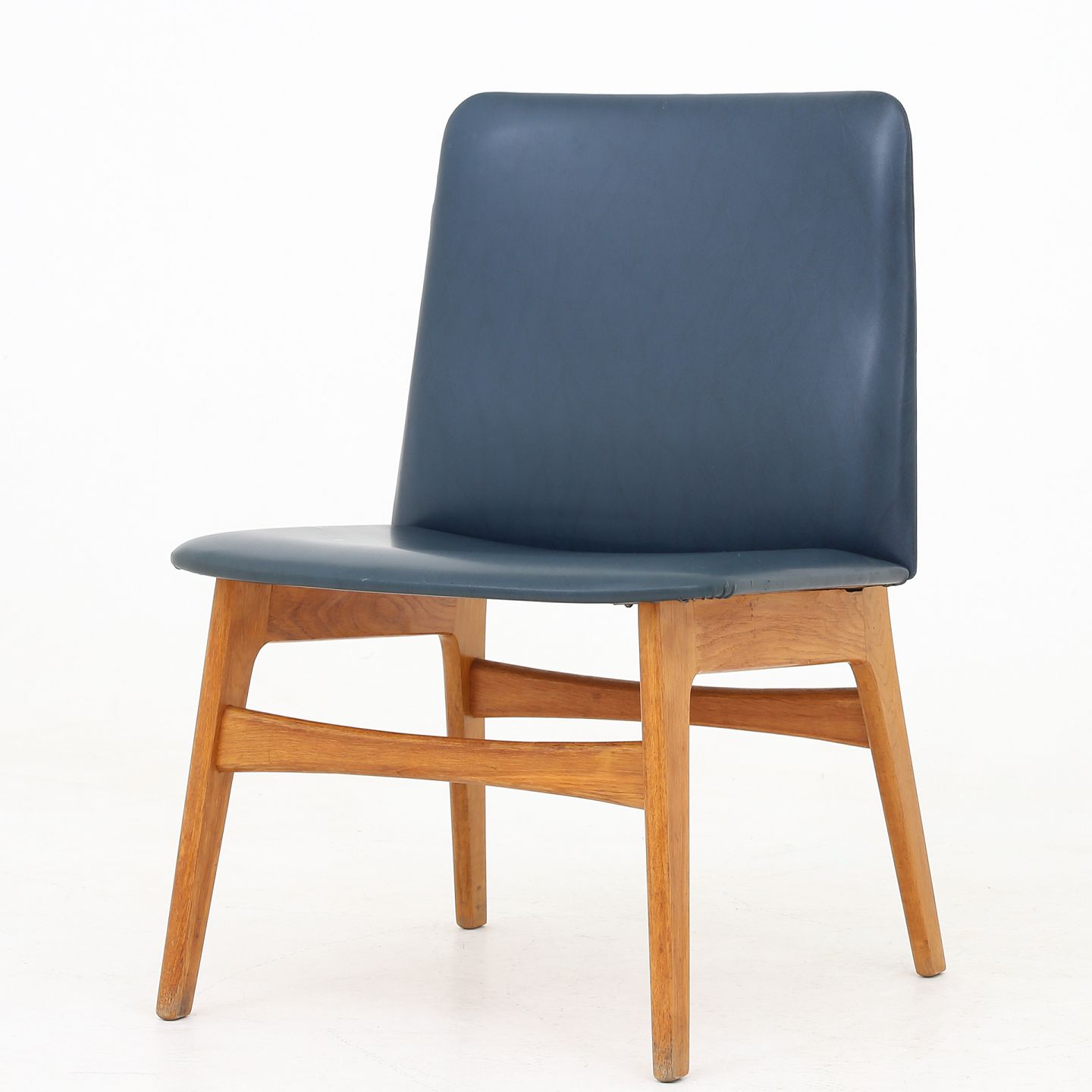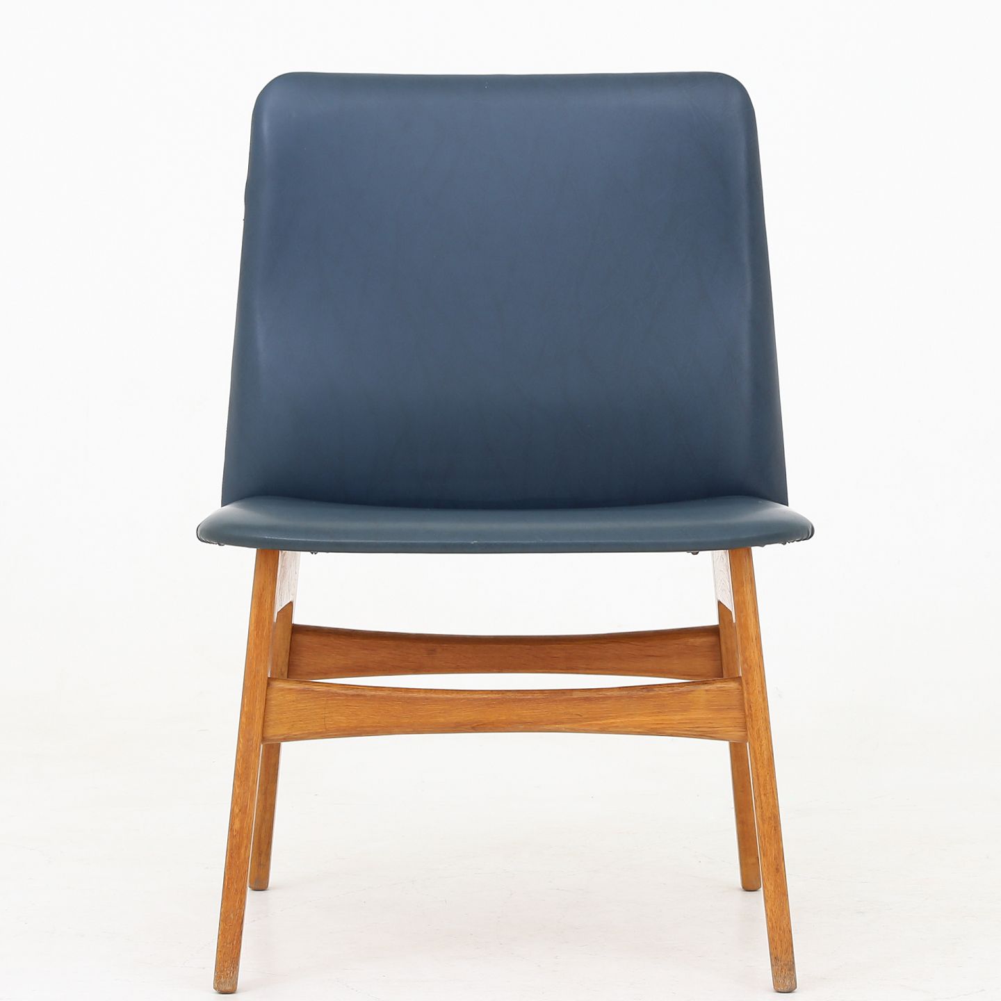 BM 230 - Lænestol med stel af eg og sæde og ryg betrukket i blåt læder. Formgivet i 1954.