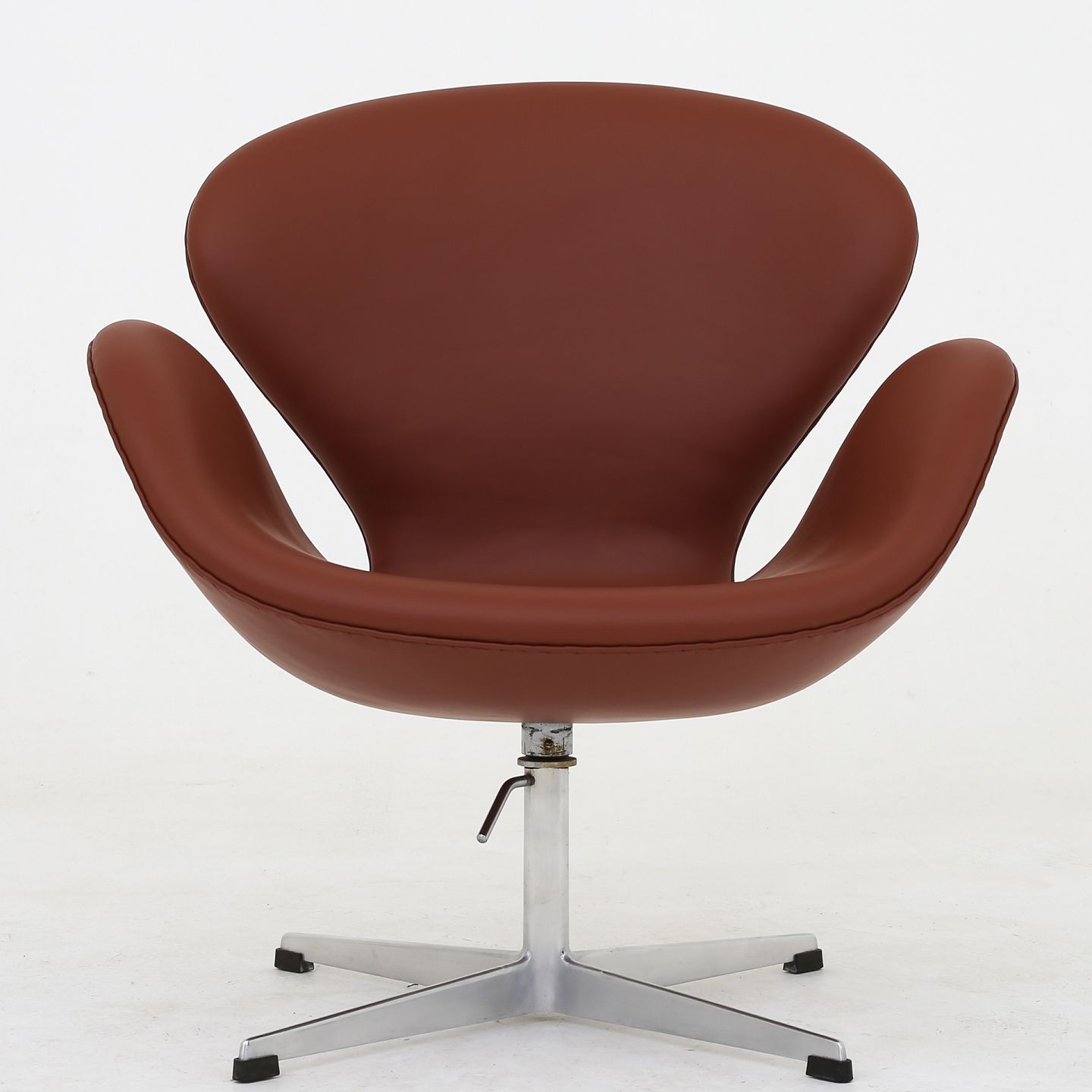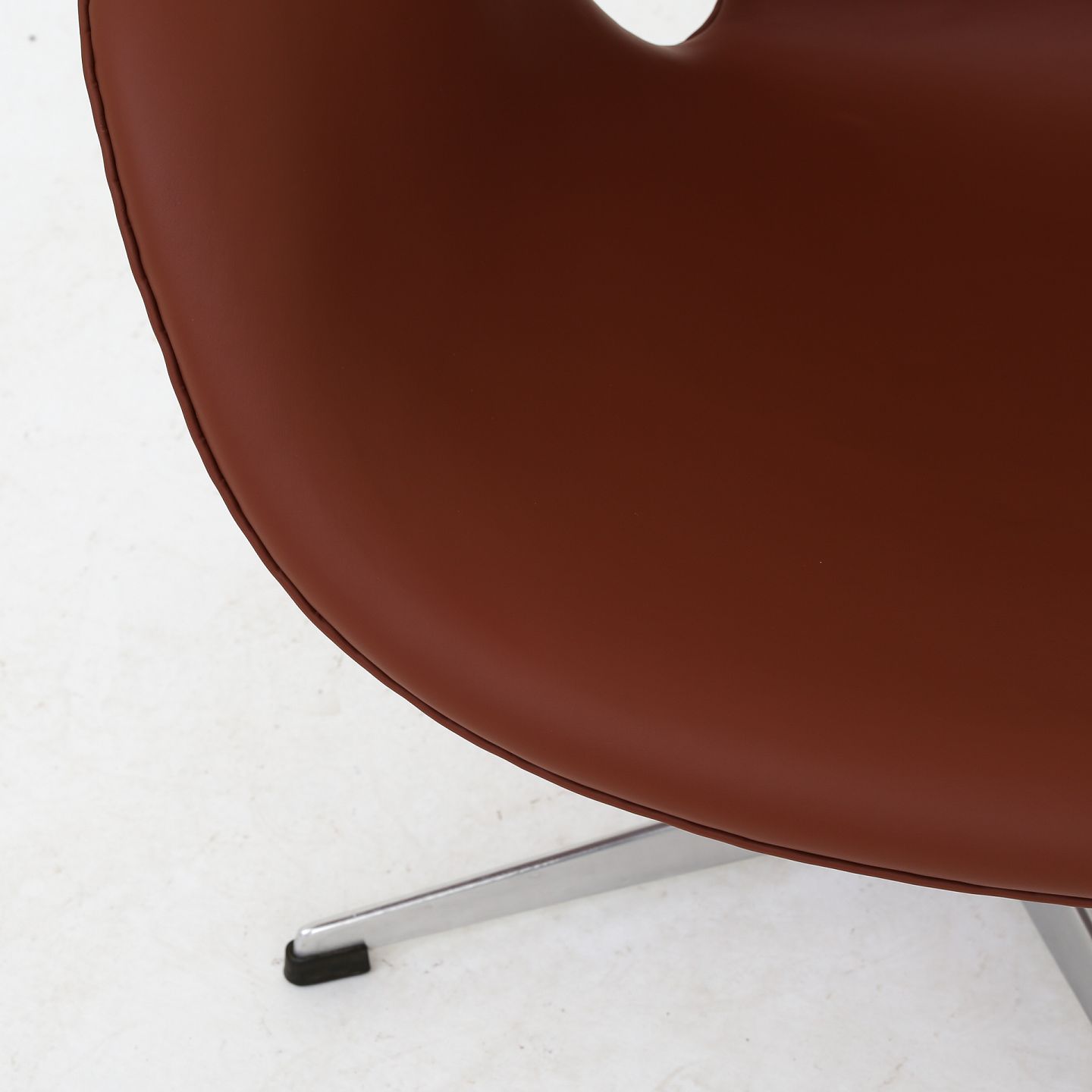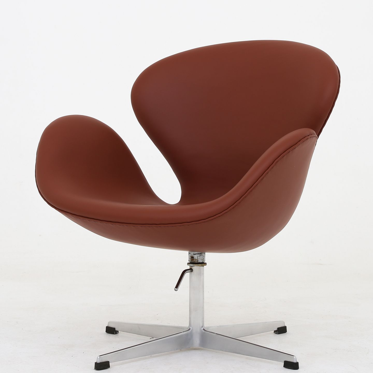 AJ 3220 - Nybetrukket 'Svanen'-lænestol i Savanne-læder (farve: Tan, 30331) med fod af aluminium.