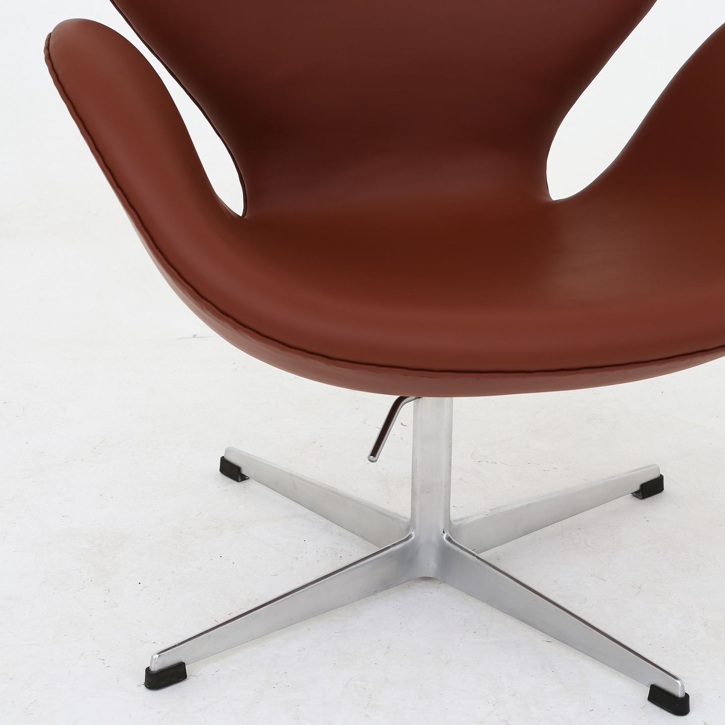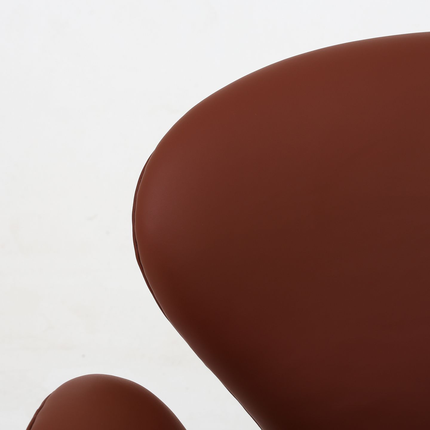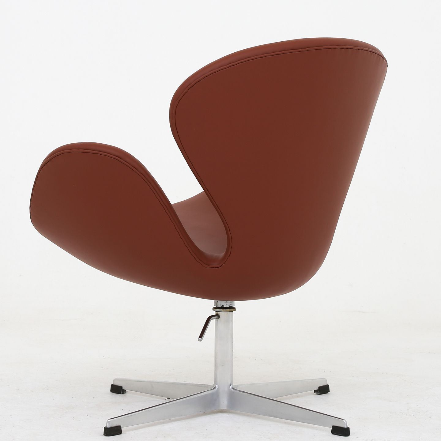 AJ 3220 - Nybetrukket 'Svanen'-lænestol i Savanne-læder (farve: Tan, 30331) med fod af aluminium.
