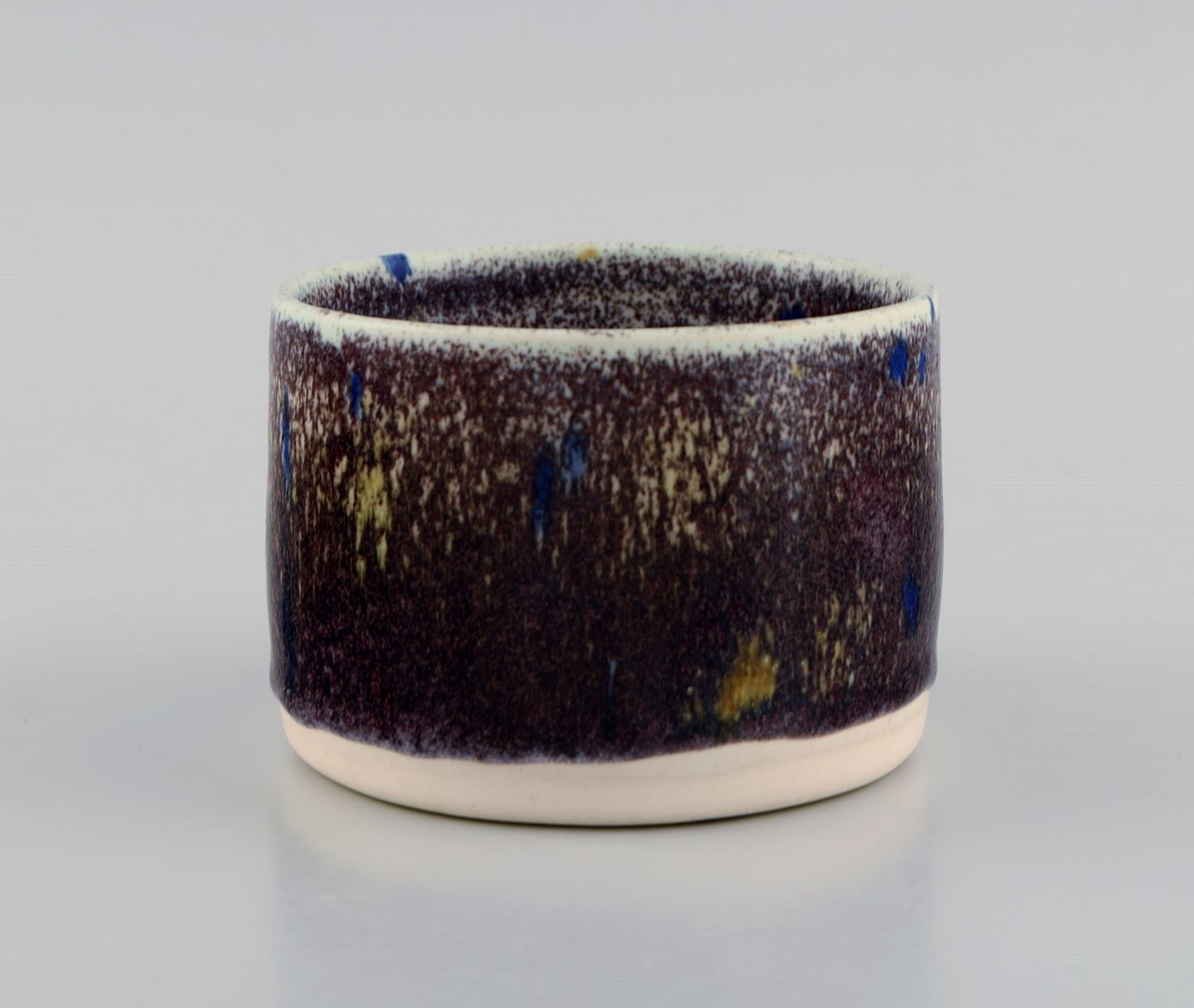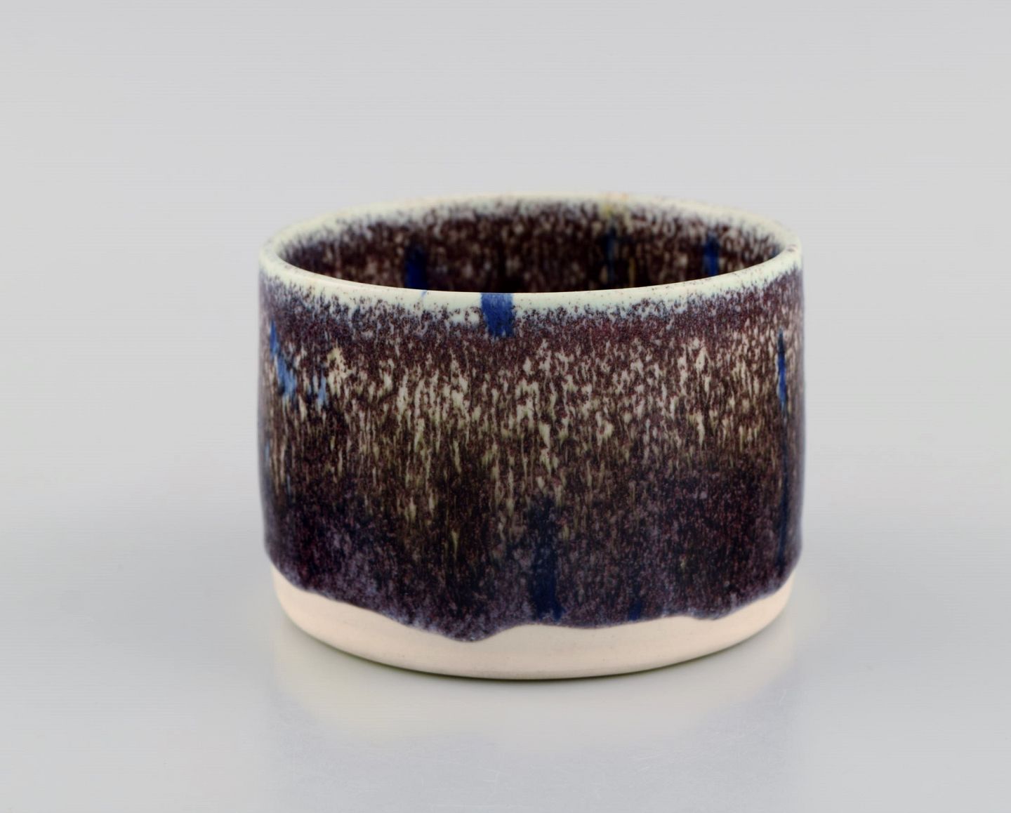 Europæisk studiokeramiker. Unika vase i glaseret stentøj. Smuk glasur i aubergine nuancer. Sent 1900-tallet.
