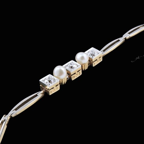 Armbånd 14k guld og hvidguld med perler og diamanter.