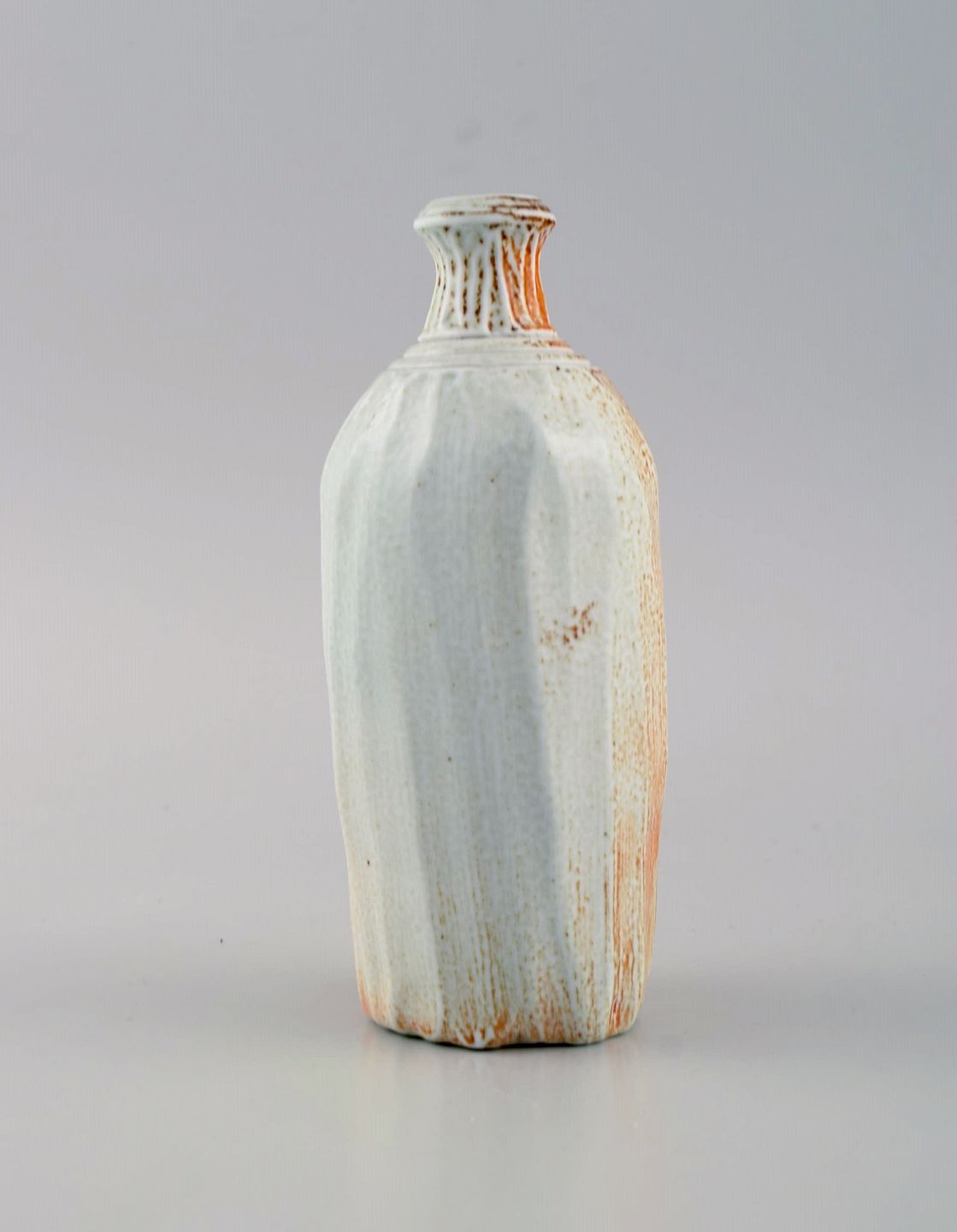 Dansk studiokeramiker. Unika vase i glaseret stentøj. Smuk glasur i lyse og orange nuancer. Sent 1900-tallet.