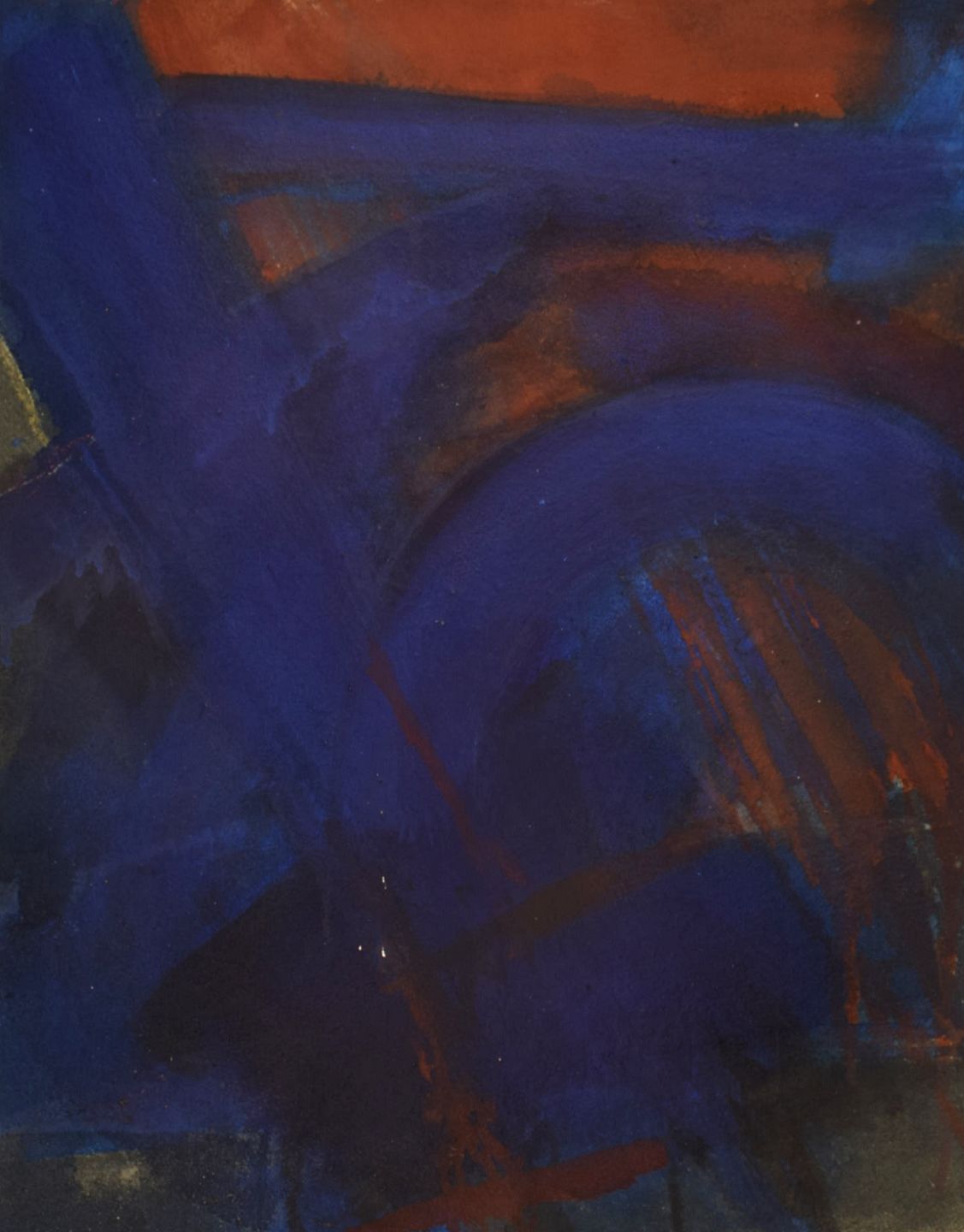 Ole Bjørn Krüger (1922-2007), Dansk kunstner. Olie på japanpapir lagt på plade. Modernistisk komposition. 1960/70'erne.