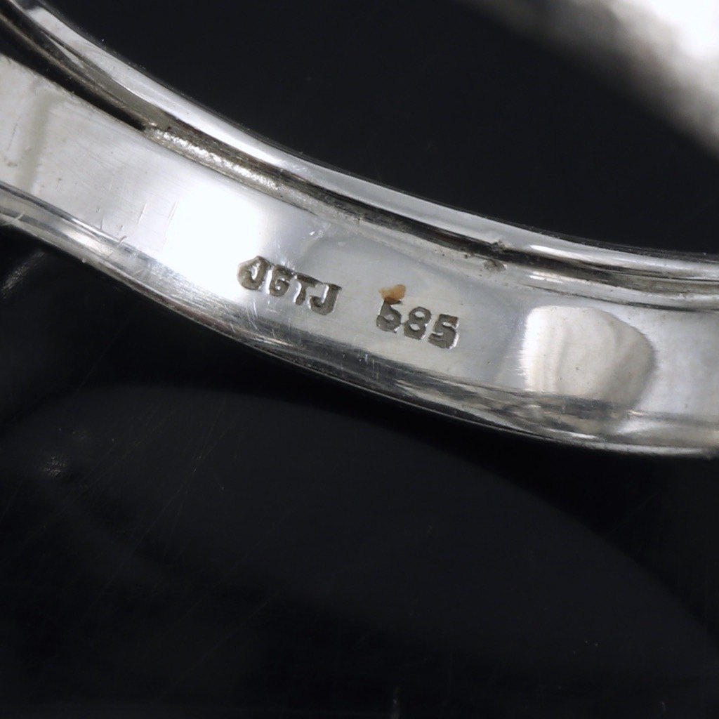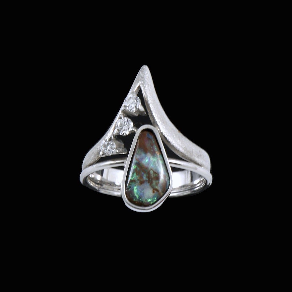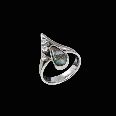 Toftegaard. Ring i 14k hvidguld med opal og diamanter. Total 0,15ct