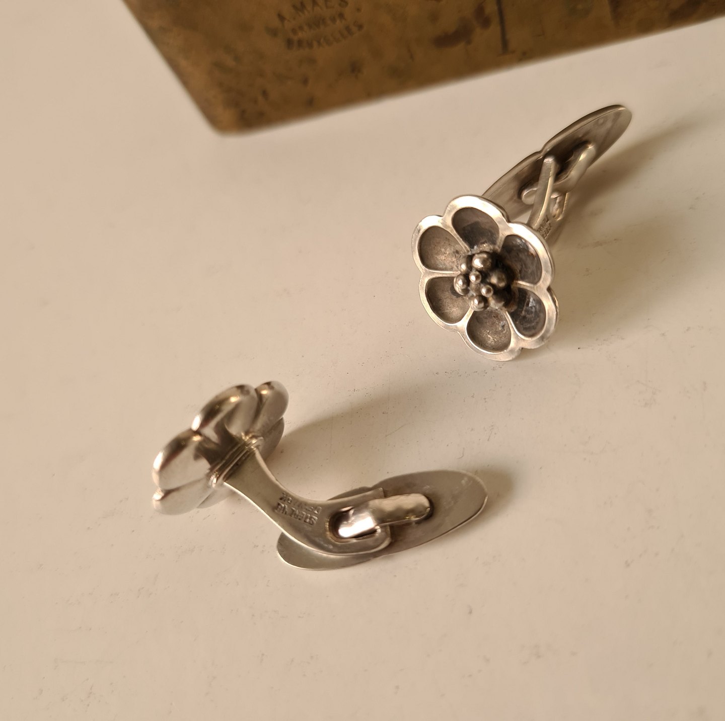 Georg Jensen sølv manchetknapper i form af blomst no. 46 - 1930-45