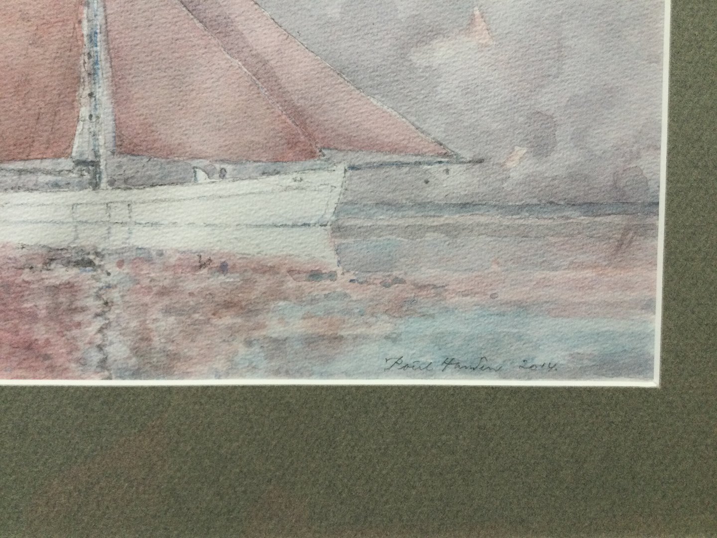 Akvarel af Poul Hansen 2014 - Sejlskib på vandet.