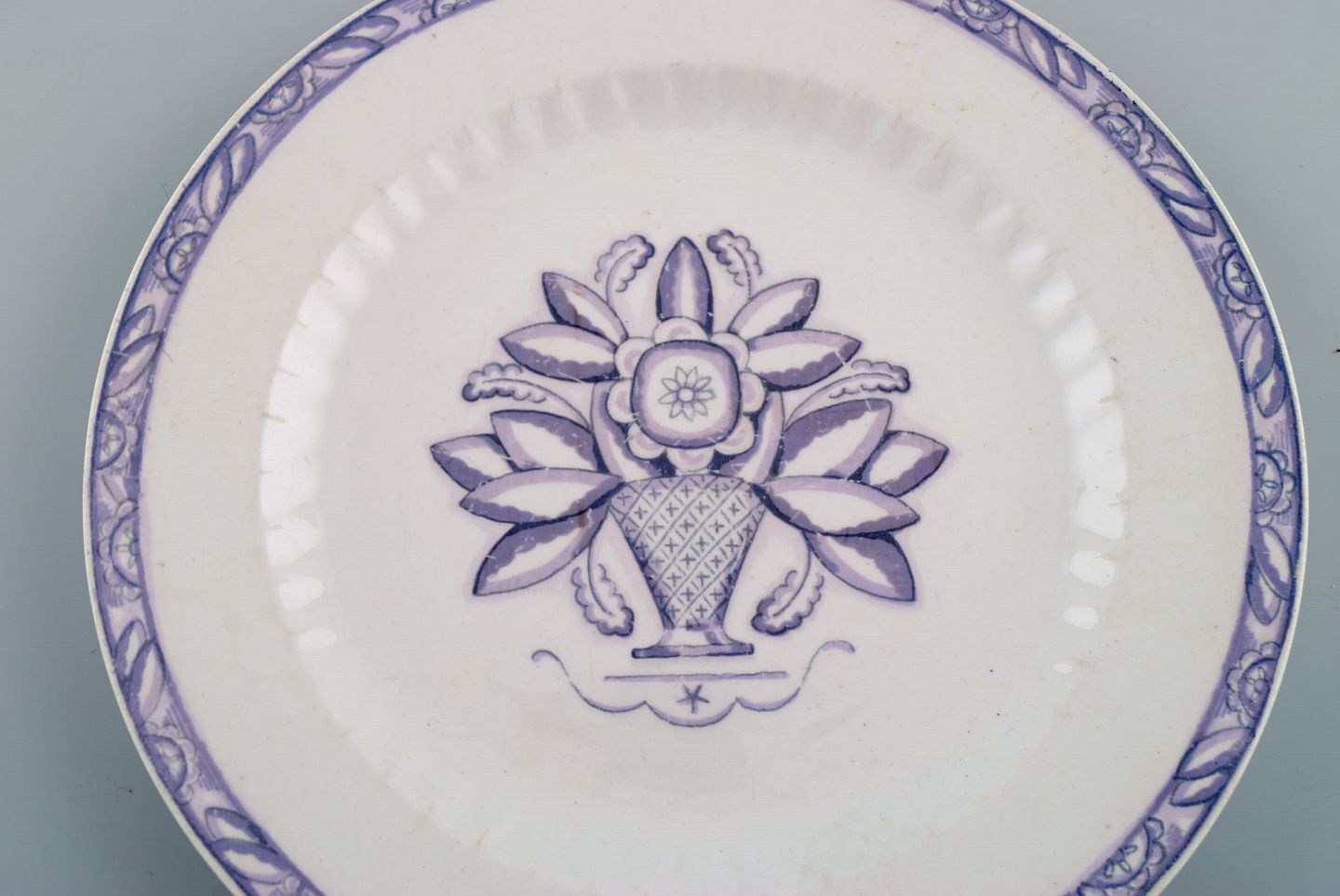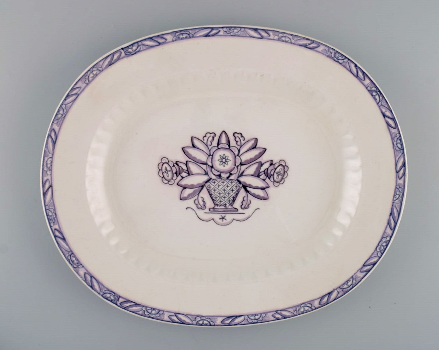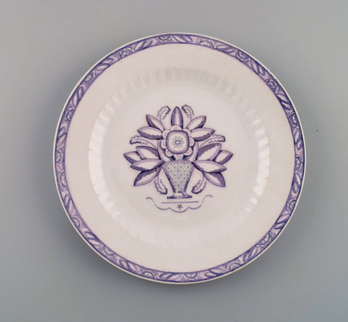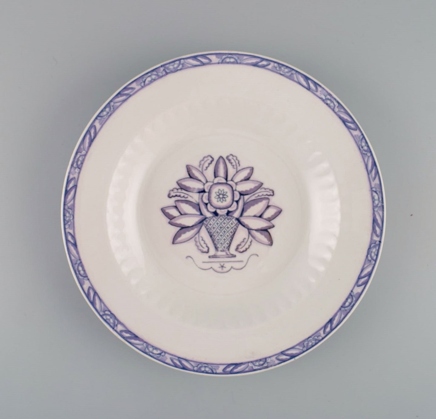 Wilhelm Kåge for Gustavsberg. Vas serveringsfad og femten tallerkener i håndmalet fajance. 1920/30'erne.