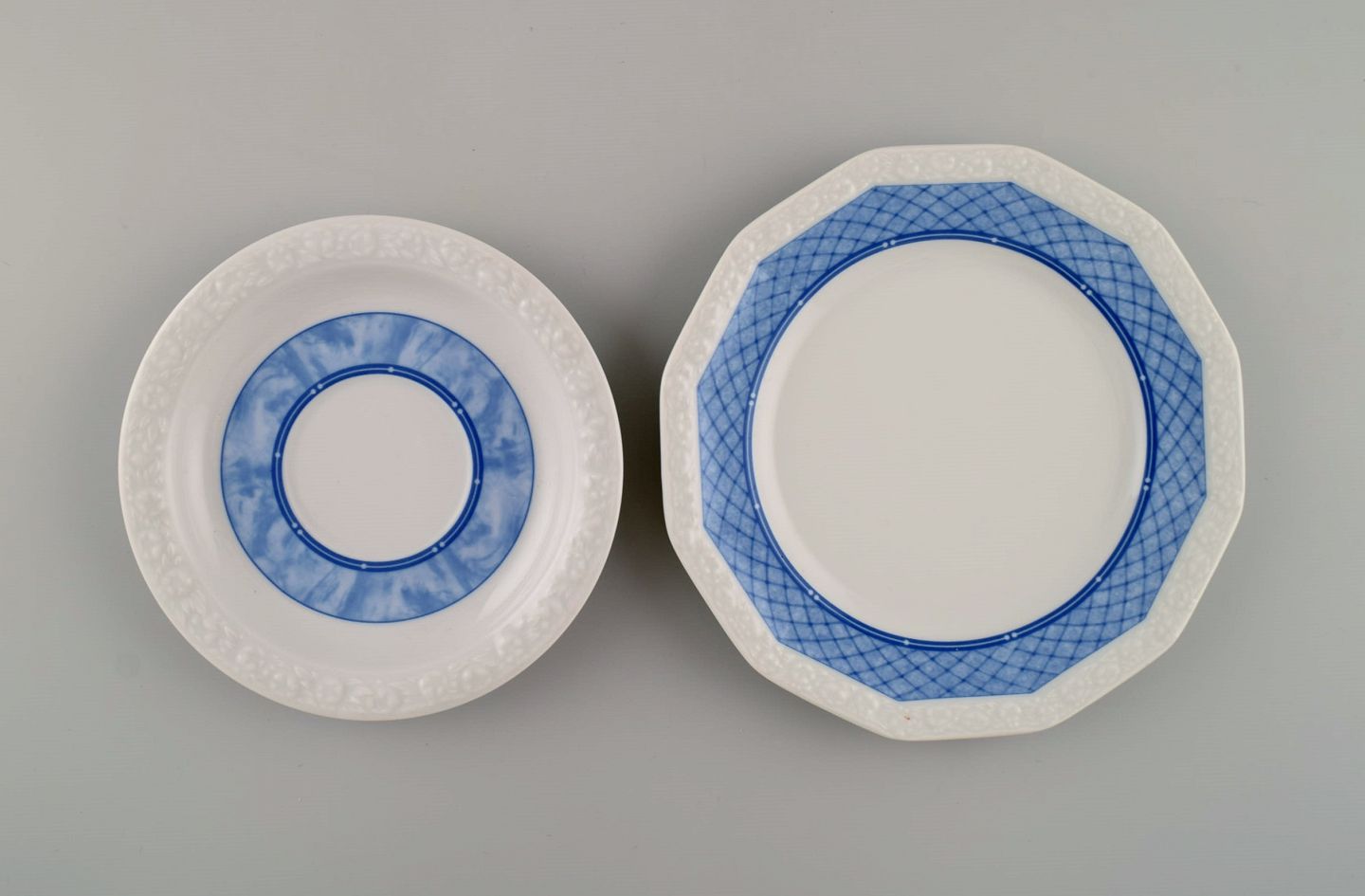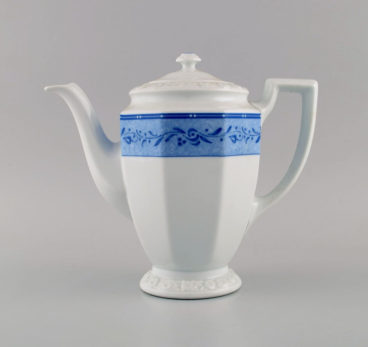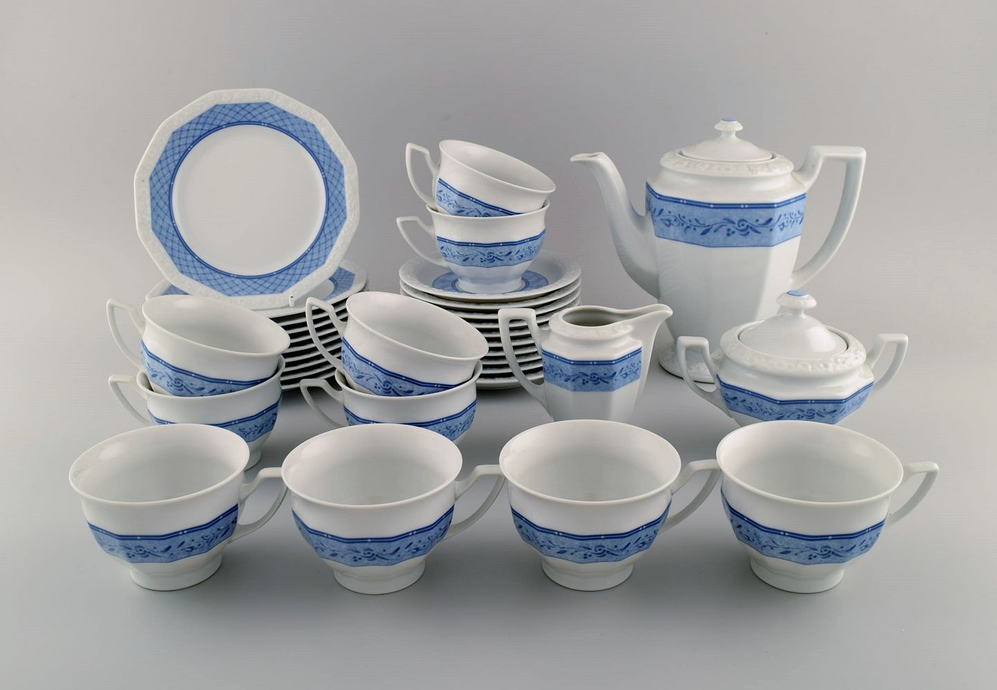 Rosenthal Classic kafferservice til 10 personer i porcelæn med blåt bånd og blomsterdekoration. Midt 1900-tallet.