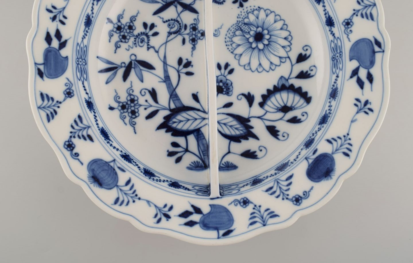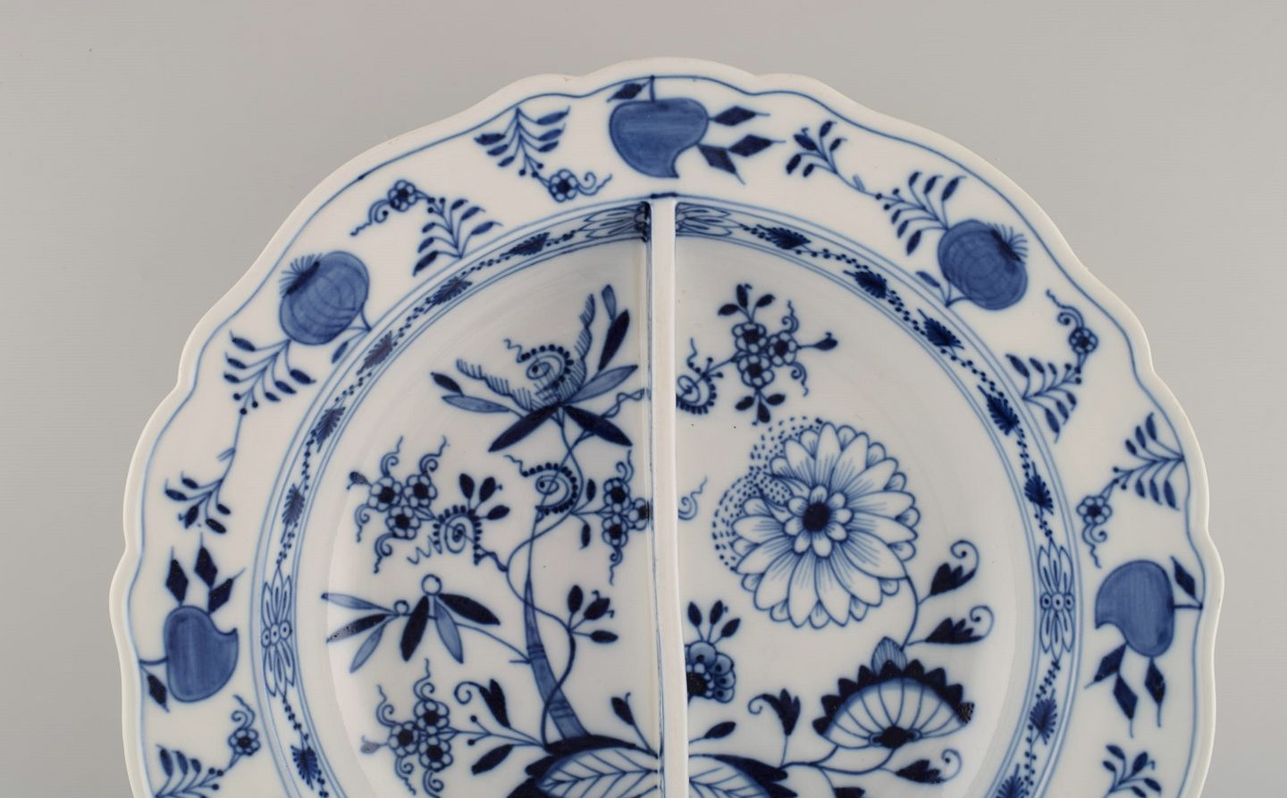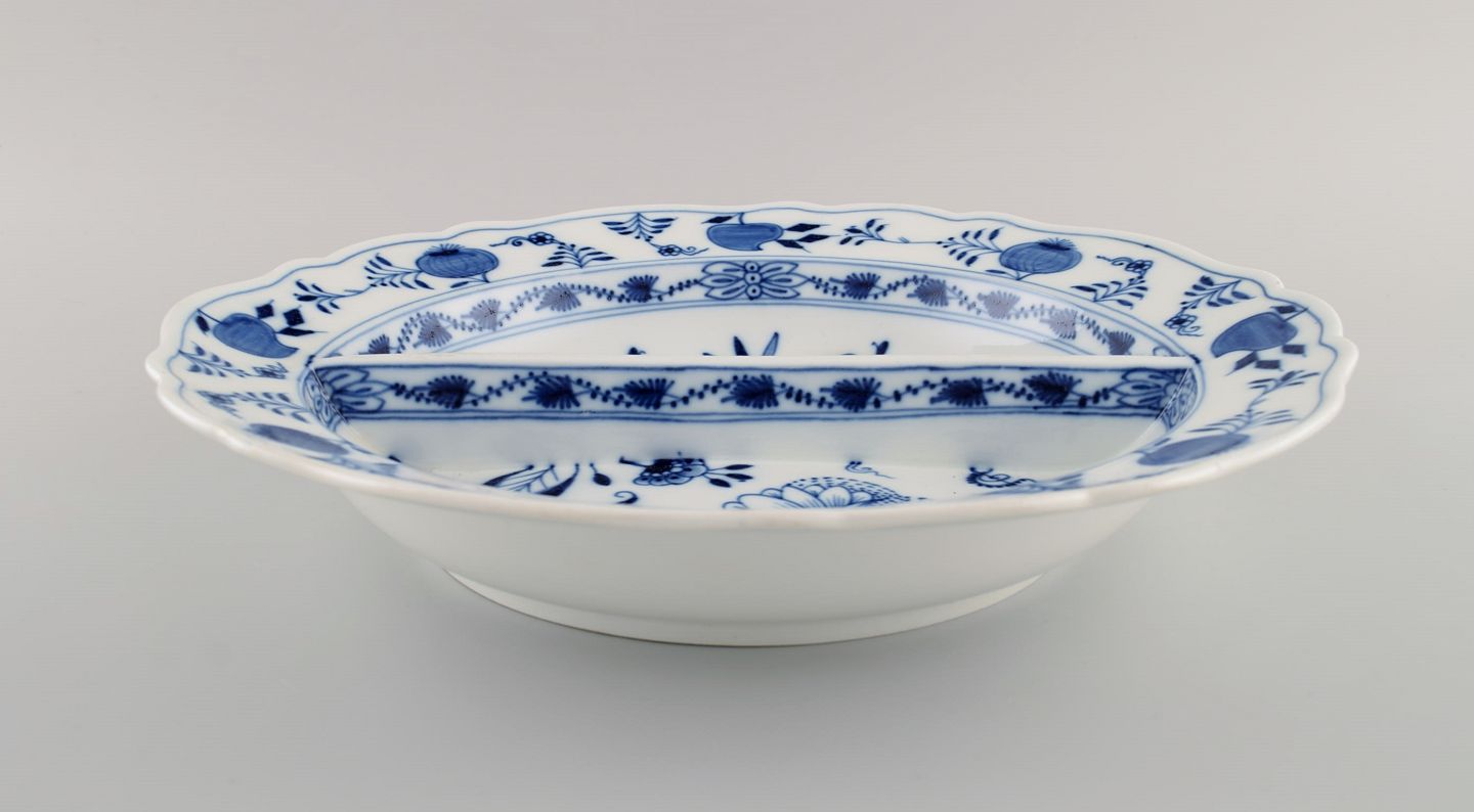 Stor antik Meissen Løgmønstret skål med rumdeler i håndmalet porcelæn. Sent 1800-tallet.