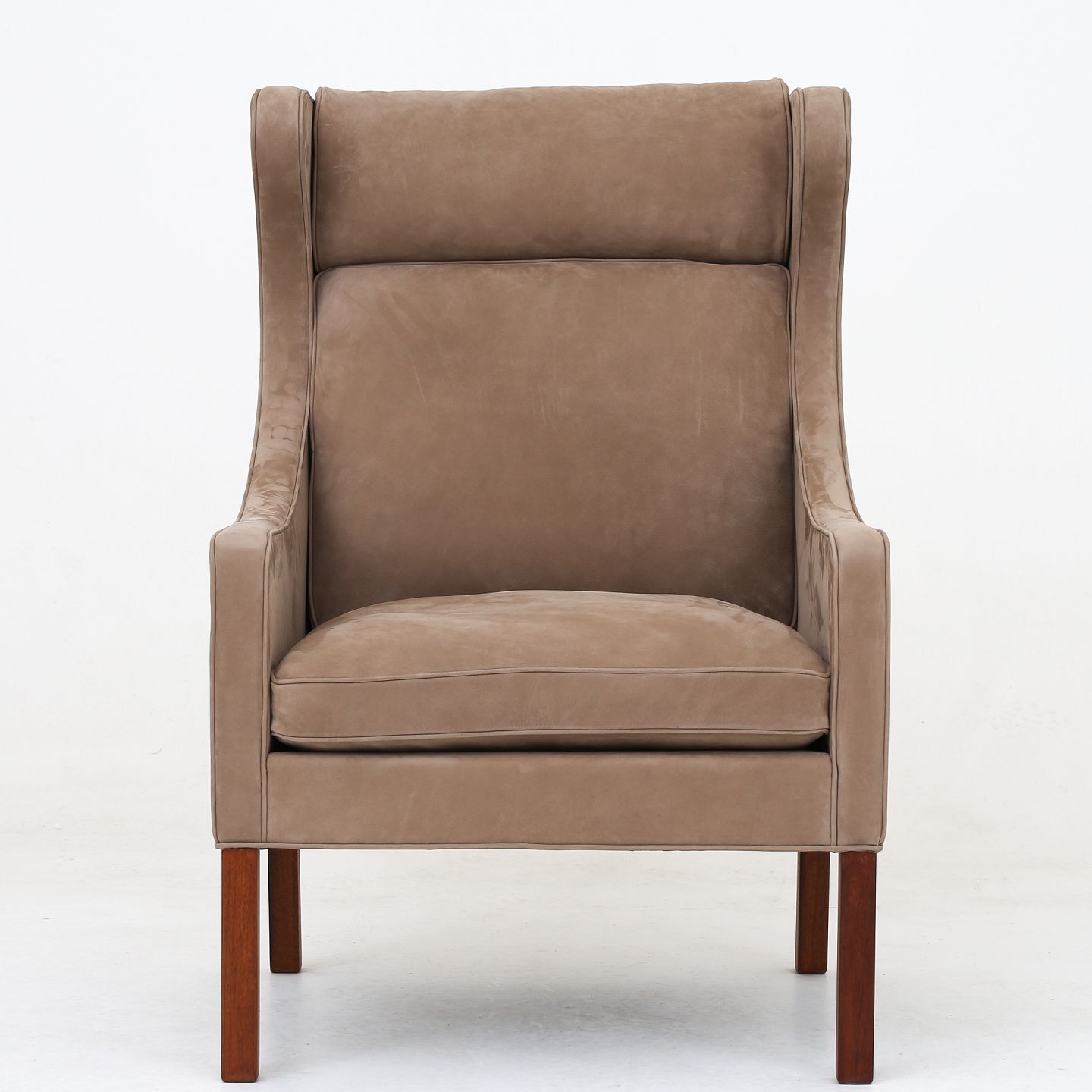 BM 2204 - Nybetrukket 'Øreklapstol' i Royal Nubuck anilinlæder. KLASSIK tilbyder polstring af stolen med stof eller læder efter eget valg.
