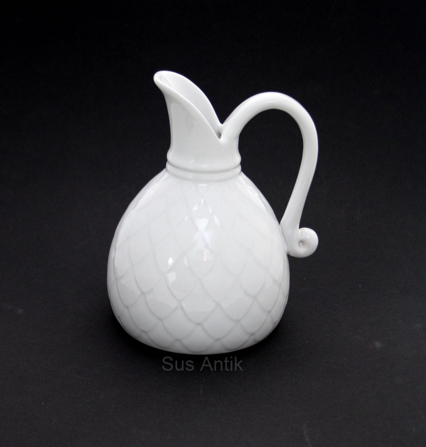 Knabstrup, Hvid kande med skelmønster. Nr. 125.810. Højde 18,5 cm. Diameter bund 12 cm. Flot stand. Pris: 425 kr.