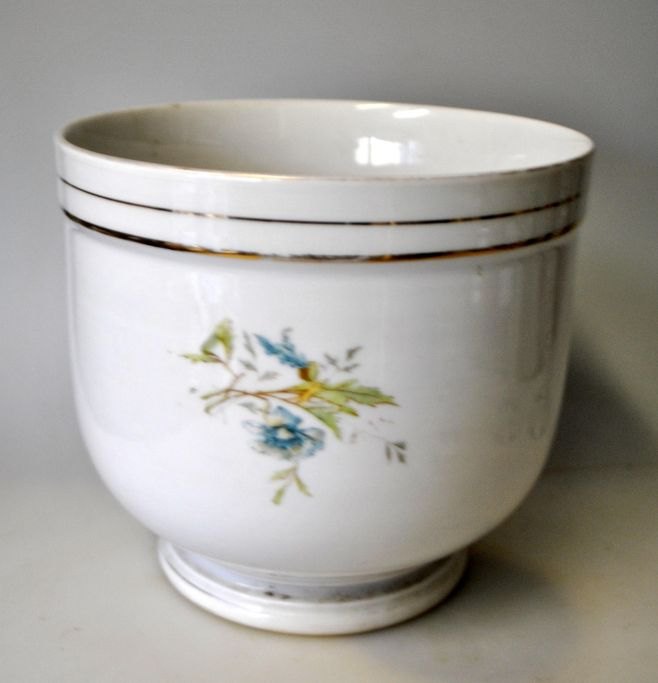 CT Altwasser flowerpot, 19th century Germany. White porcelain with floral motifs in transfer technique. With gildings. Stamped. H .: 15 cm. Dia .: 16.8 cm.