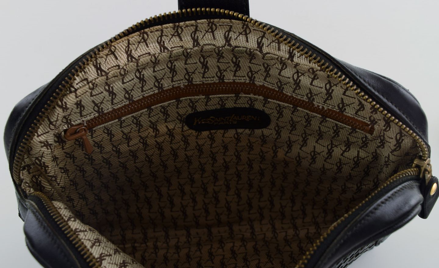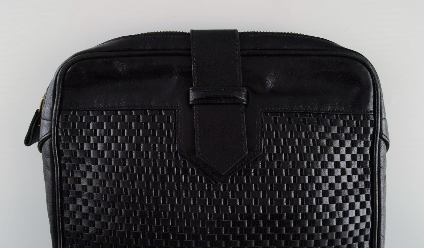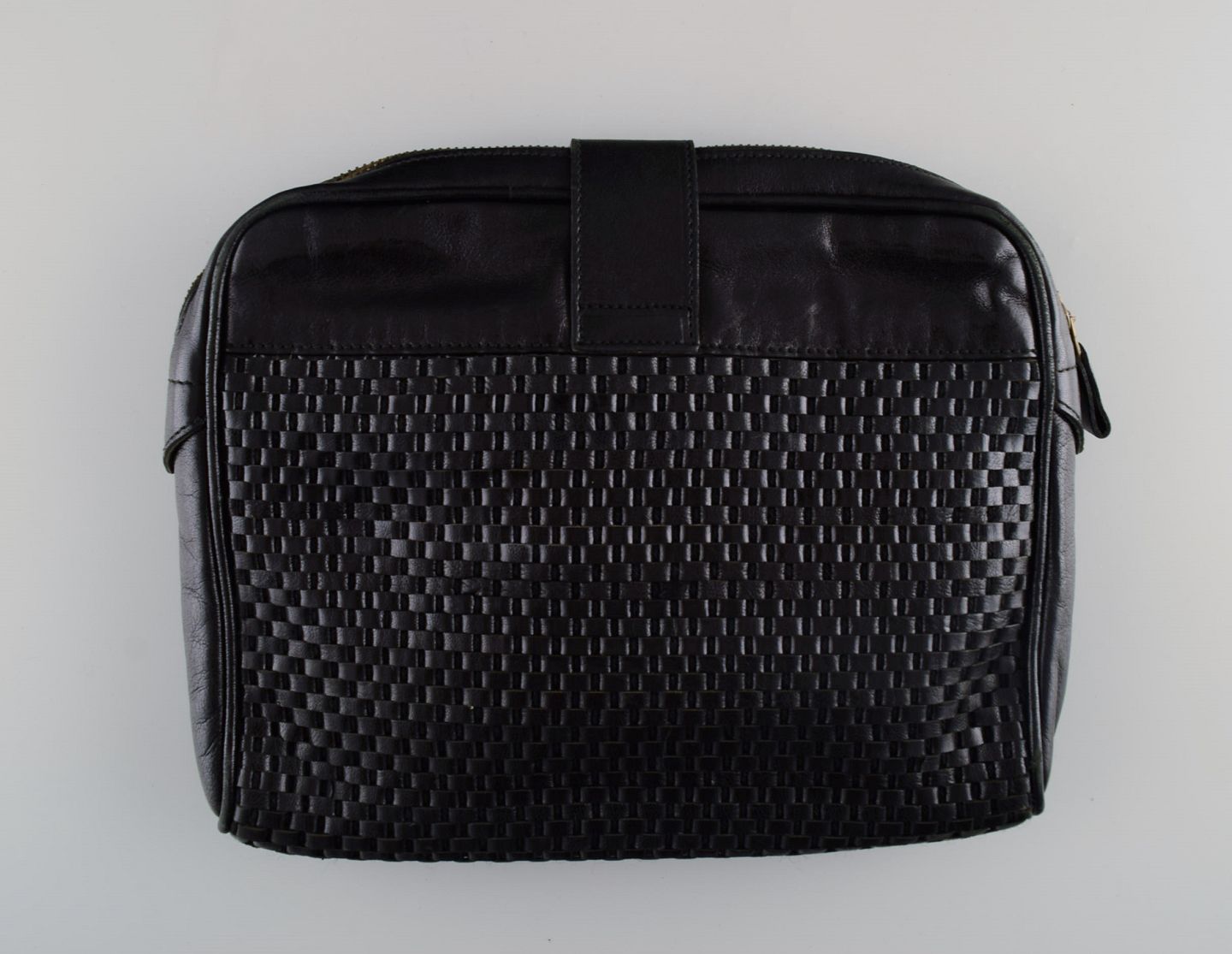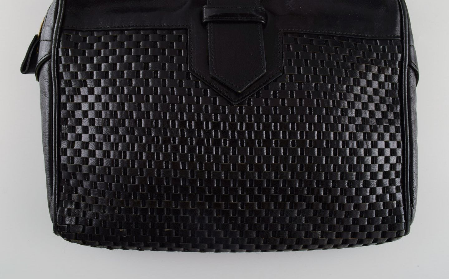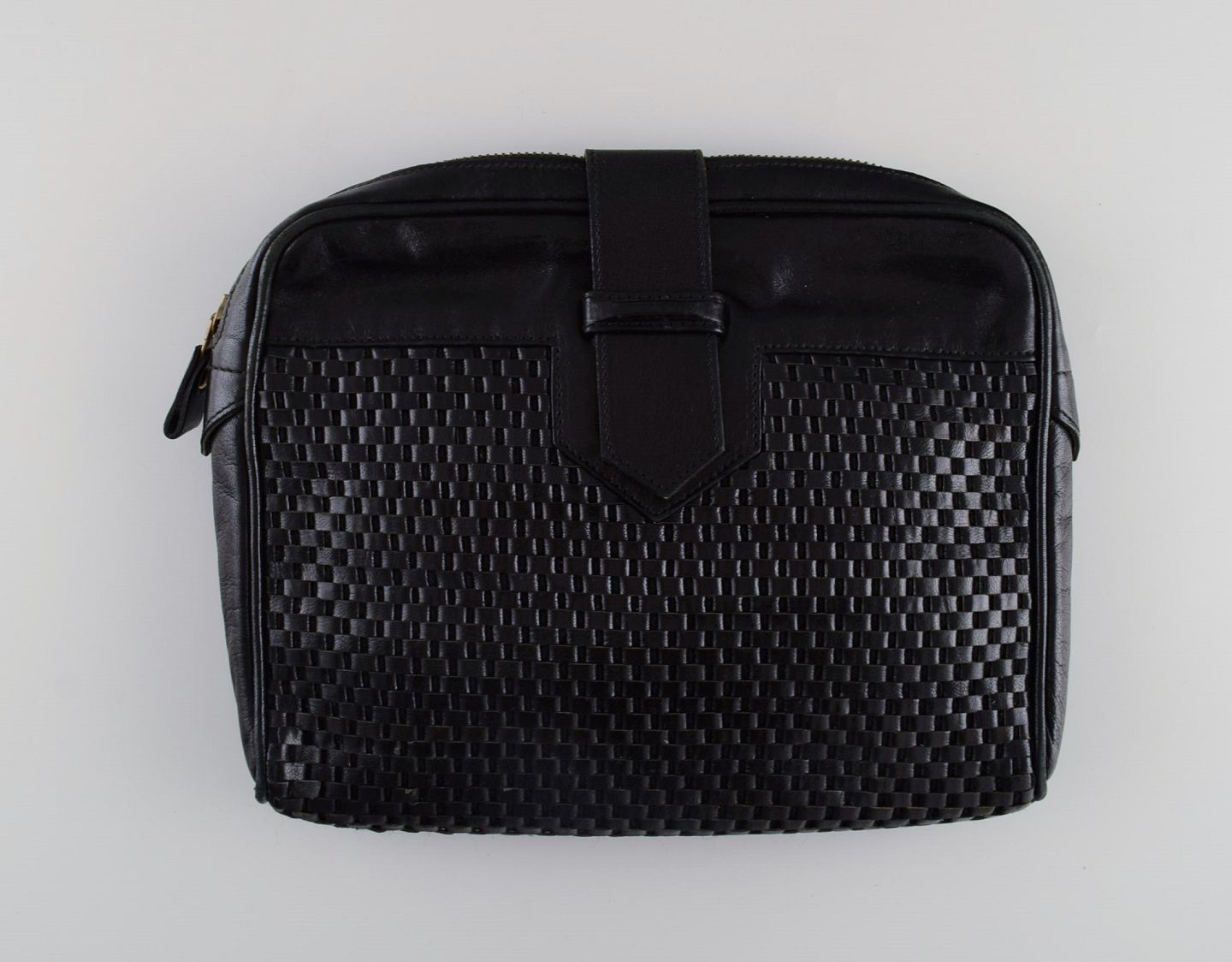 Vintage Yves Saint Laurent selskabstaske i sort læder med flettet mønster. 1960/70'erne.
