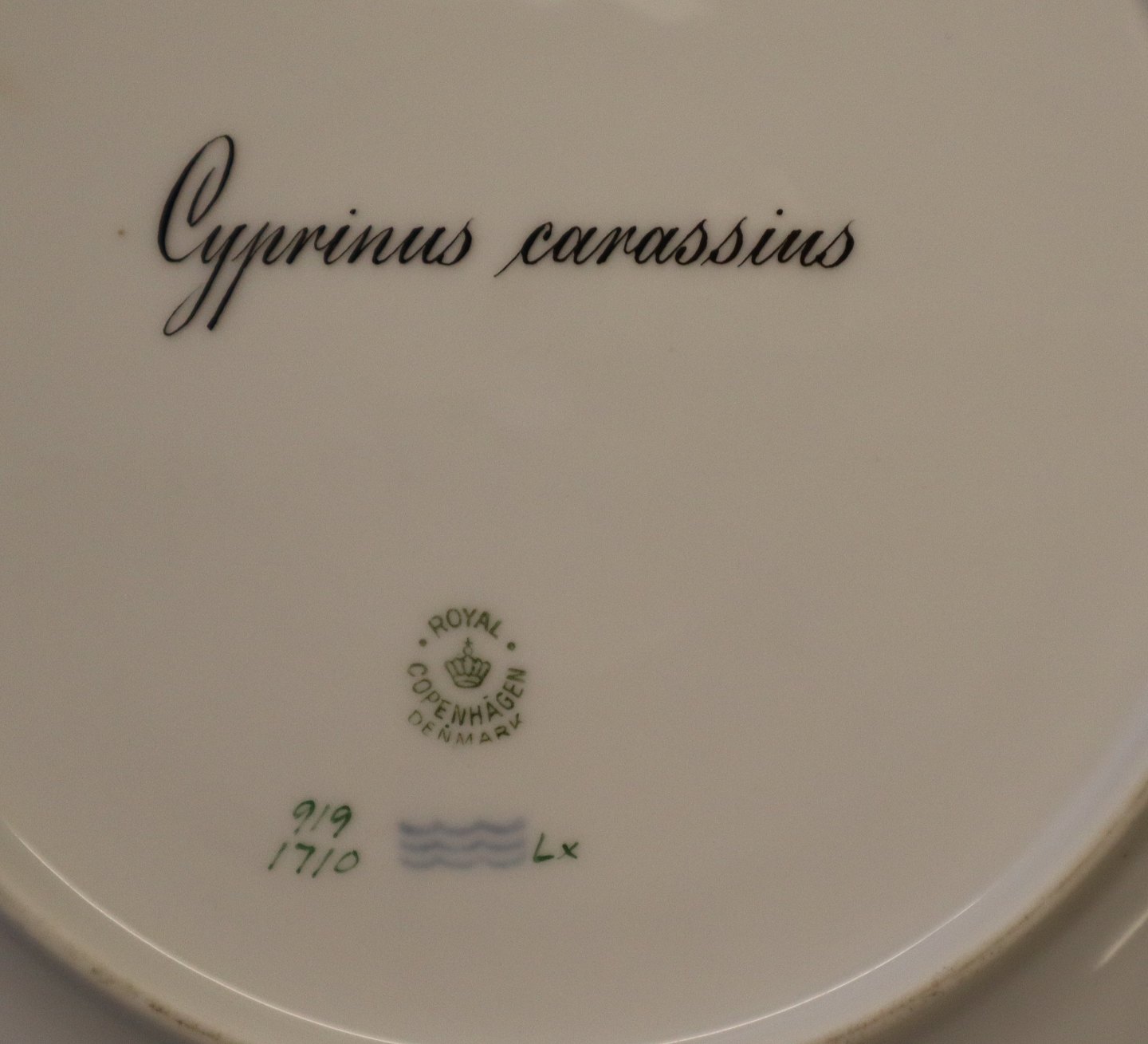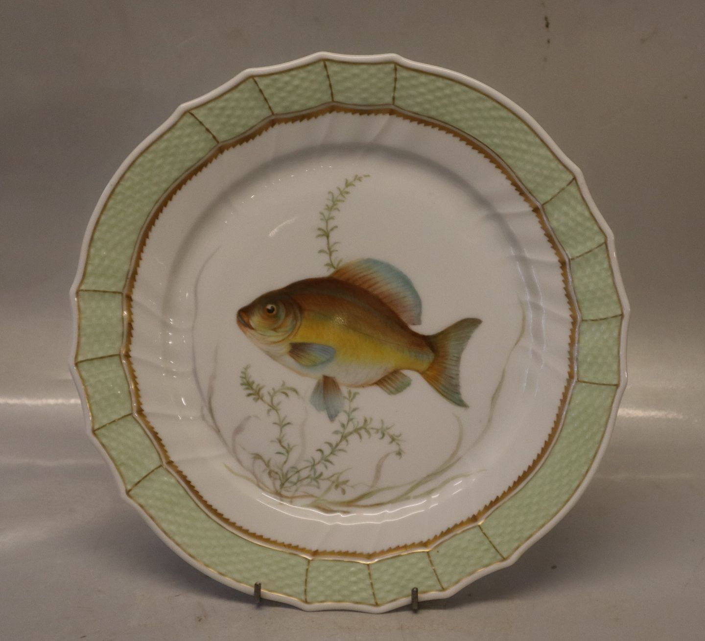 919-1710 Karusse "cyprinus carassius" svejfet med grøn bort 25.5 cm Royal Copenhagen Svejfet Fisketallerken