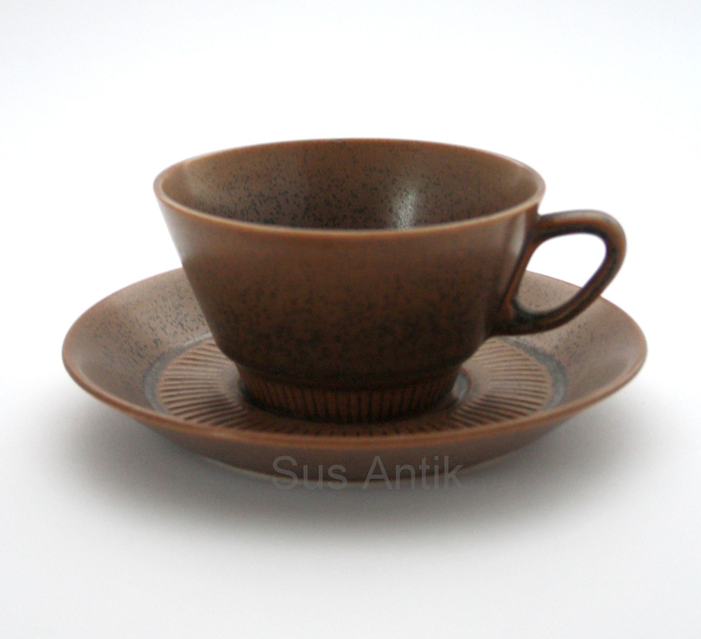 Knabstrup, Knabstrupstellet brun, Nøddebo. Tekop med underkop. Diameter 10,5 cm. Højde 6,5 cm. Pris: 125 kr. stk. Lager: 12