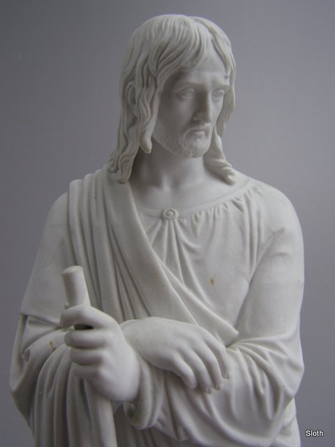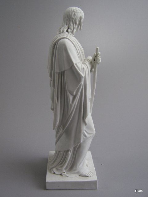 Royal Copenhagen Bisquit Apostlen Jakob der læner sig til en valkestok H: 32,5 cm.