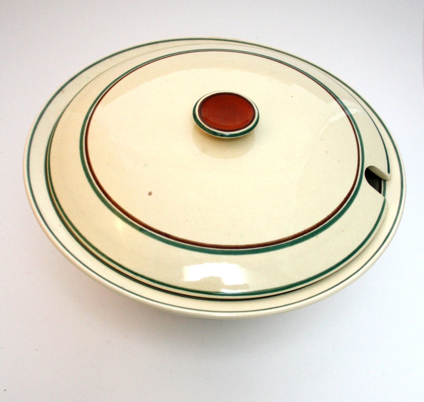 Text available in Danish: Suppeterrin med låg, Jenny, Aluminia