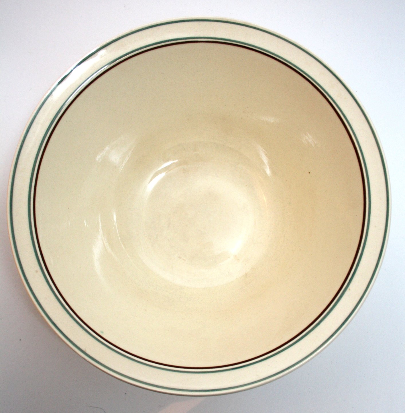 Text available in Danish: Aluminia fajance, Jenny. Designet af Niels Thorsson produceret i perioden 1937-67, luftmalet. Suppeterrin. Selve skålen har en diameter på 25,5 cm og højde 15 cm. Fin stand. Pris: 375 kr. stk. Lager: 1