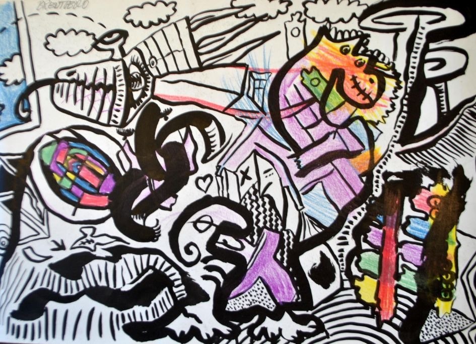 Bredtved, Michael (1959 - ) Danmark: Komposition. Tusch/pastel på papir. Signeret. 30 x 41,5 cm.
