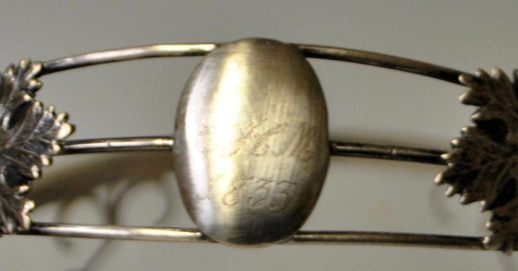 NB: Enkelte af vindruebladene mangler. På hank inskription: CHM 1833.