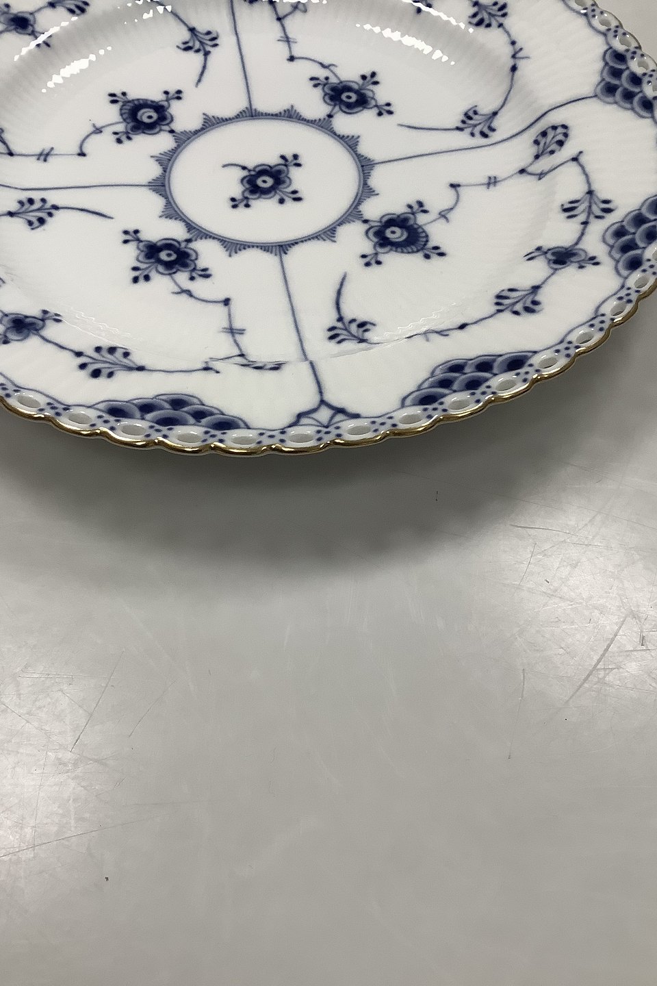 Royal Copenhagen Musselmalet Helblonde Flad Tallerken med guld No 1084. Måler 25 cm / 9 27/32 inch. 2. sortering.
