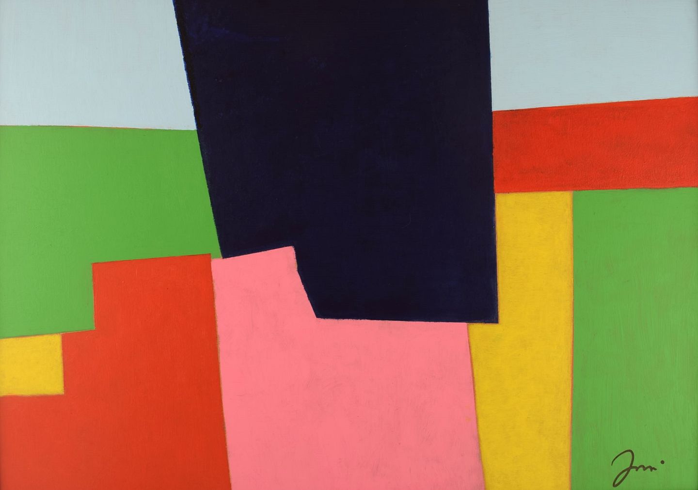 Europæisk kunstner. Olie på plade. Geometrisk komposition. Sent 1900-tallet.