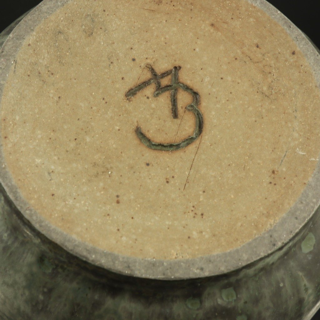Stentøjskrukke med glasur udført hos Arne Bang (1901 - 1983). Stemplet AB.