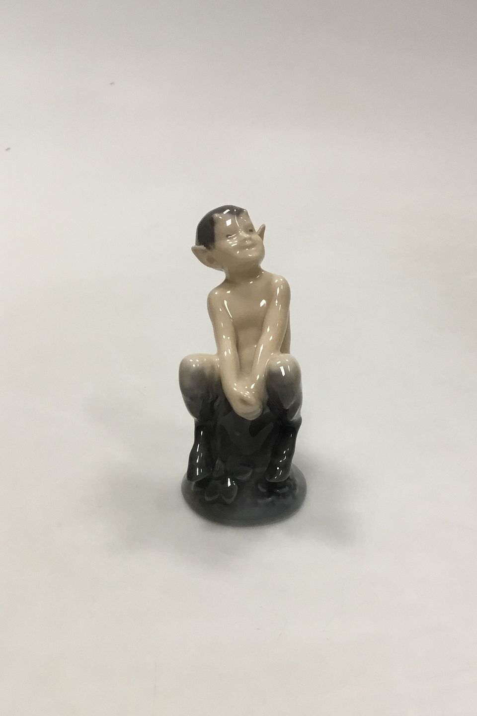 Royal Copenhagen Figurine of Faun on Stump No 1738. Measures 8,5 cm (3 11/32"). In great condition. Designed by Th. Madsen in 1915.