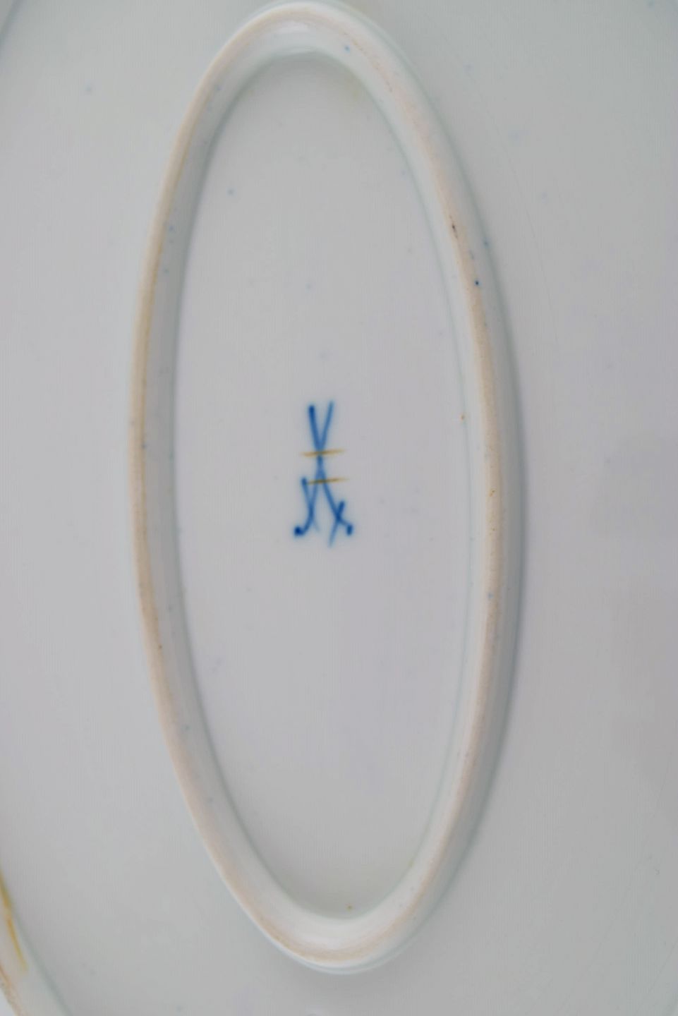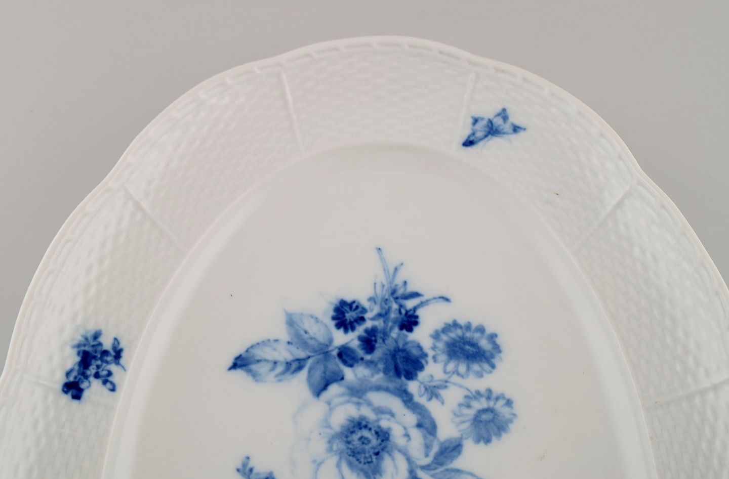 Stort ovalt Meissen fad i håndmalet porcelæn. Blå blomster og sommerfugle. Sent 1800-tallet.