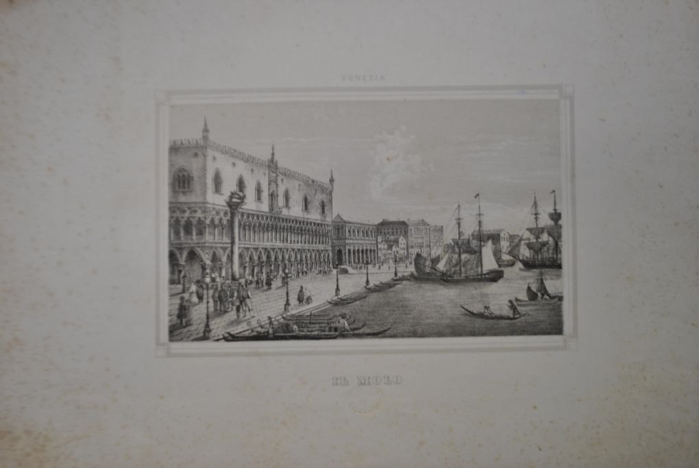 Italiensk kunstner, 19. årh.: Il Molo, Venedig. Litografi. 24 x 33 cm.