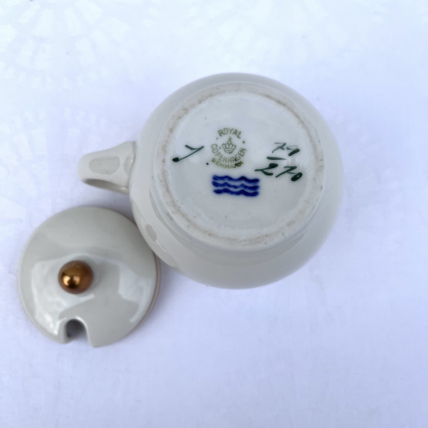 Royal Copenhagen, Det spanske stel, Sennepskrukke #79/270, 6,5cm i diameter, 9cm høj, Design Christian Joachim *Pæn stand*