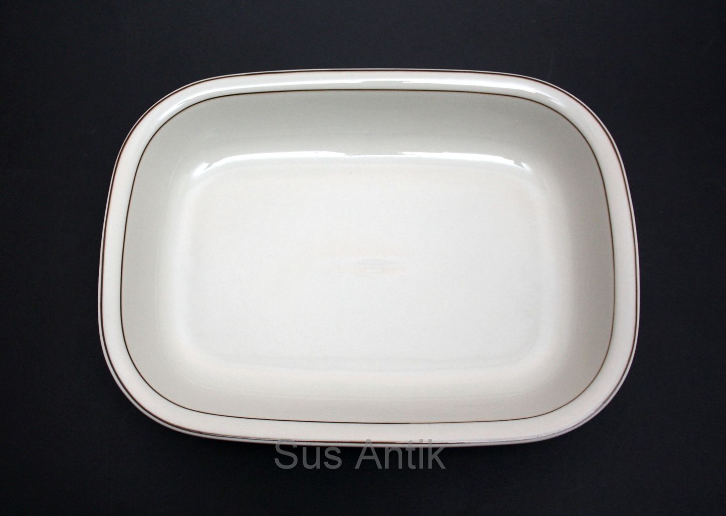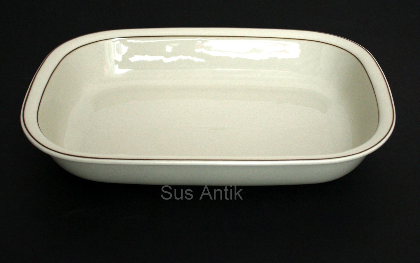 Aflangt dybt fad. Højde 5,5 cm. Længde 30 cm. Bredde 22,5. Lettere brugsridser indvendig i bund, ellers fin stand. Pris: 250 kr. stk. Lager: 2