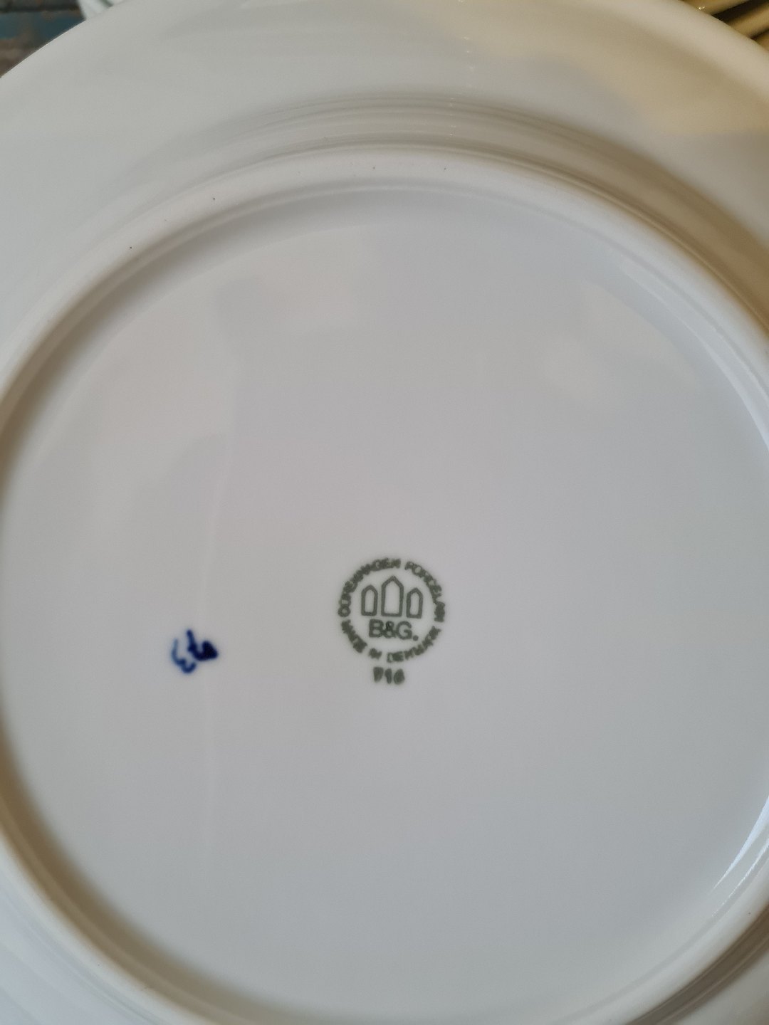B&G Blåmalet Hotel porcelæn - middagstallerken med logo no. 716 - 1009, 24,5 cm. |