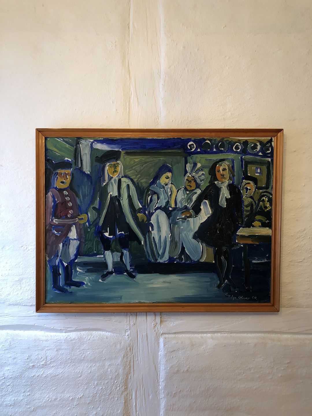 Eyvind Olesen maleri olie på lærred, motiv af figurgruppe. sign. og dateret 1960.