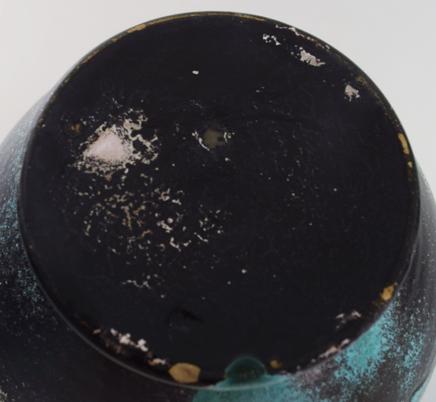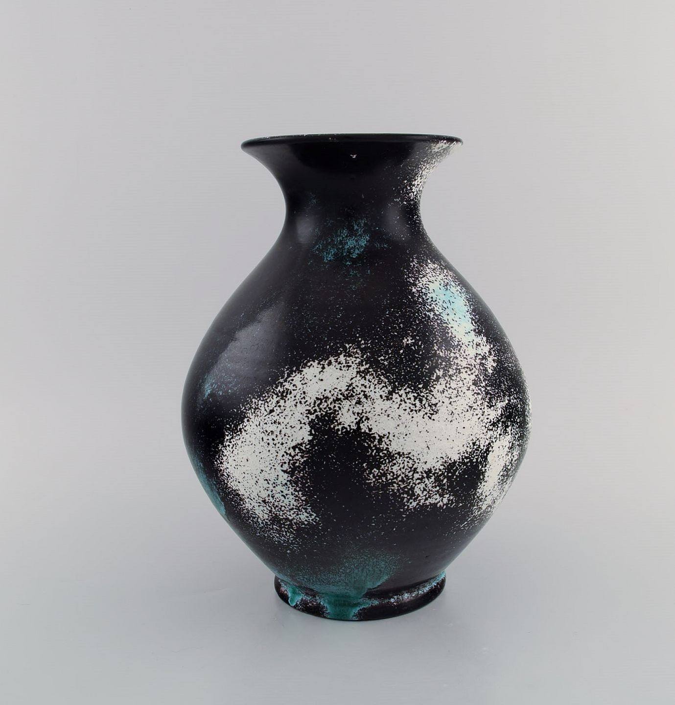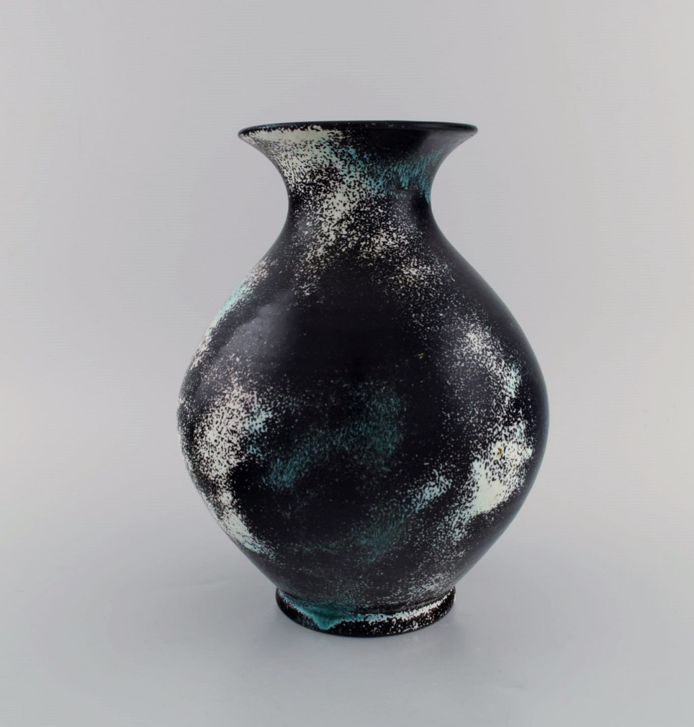 Jens Thirslund for Kähler, HAK. Vase i glaseret stentøj. Smuk glasur i sorte, hvide og turkis nuancer. 1920/30'erne.
