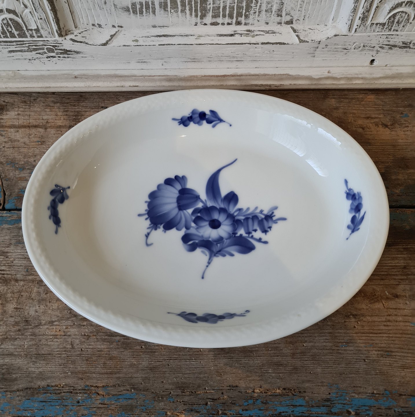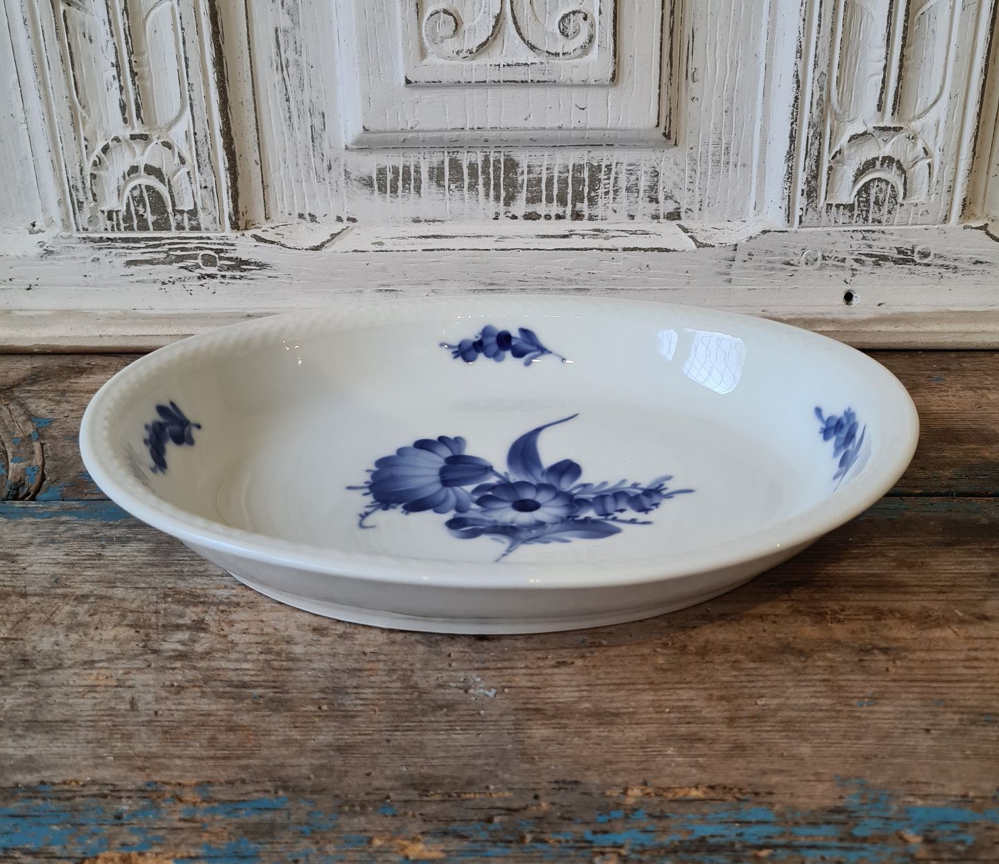 Royal Copenhagen Blå Blomst Flettet sjældent ovalt fad med ombukket kant