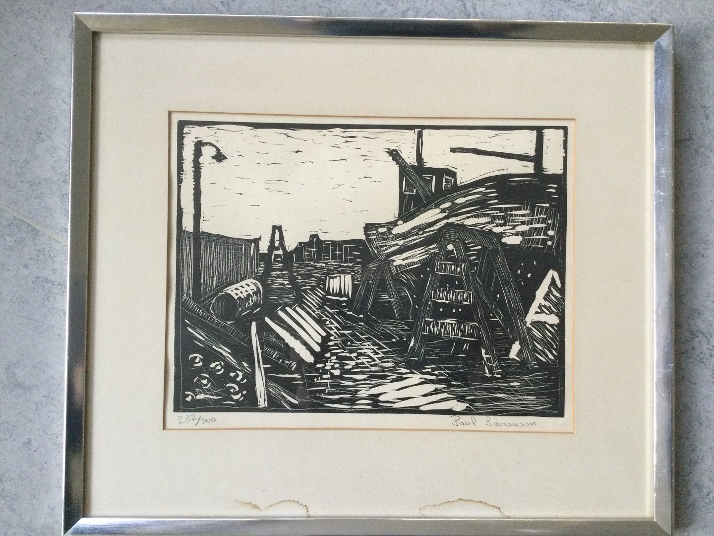 Fugtpletter nederst på passepartout.