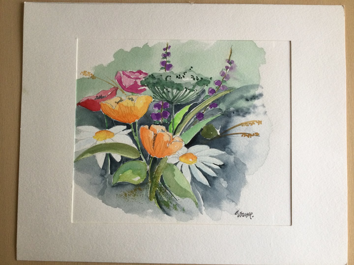 Akvarel af Erik Stuhr - Blomsterbuket.