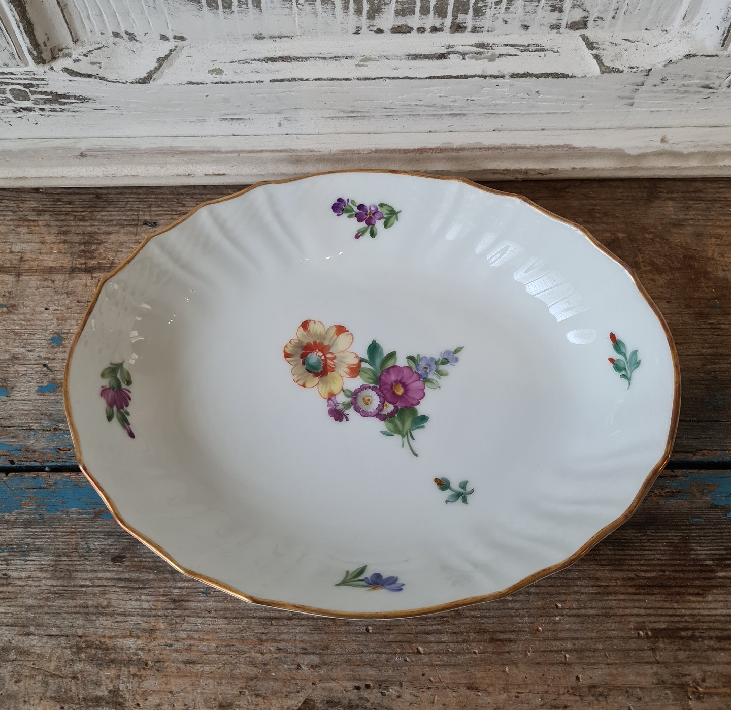 Royal Copenhagen Let Saksisk Blomst oval skål