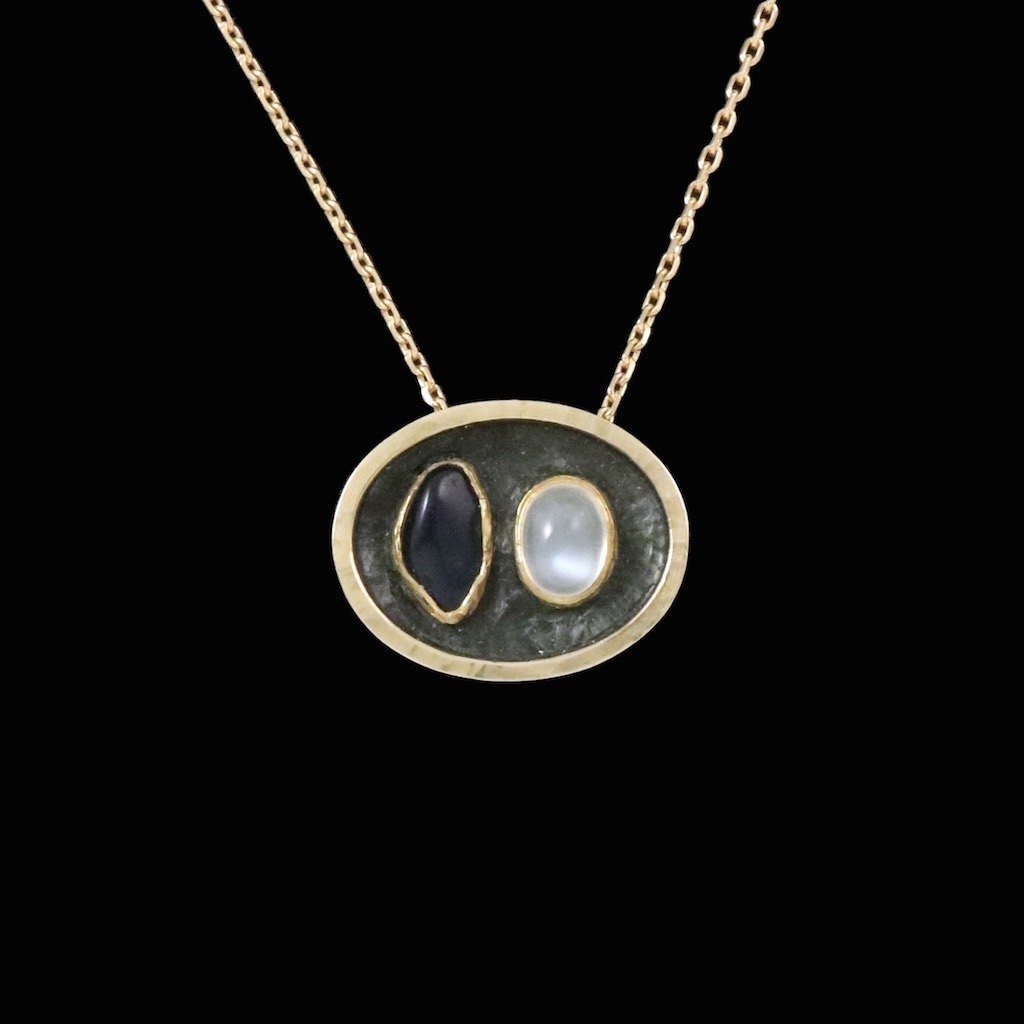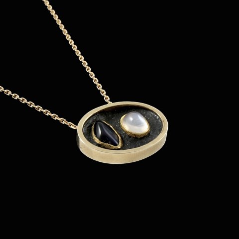 Ole Waldemar Jacobsen. Vedhæng i 14k guld med Opal og månesten - 1966.