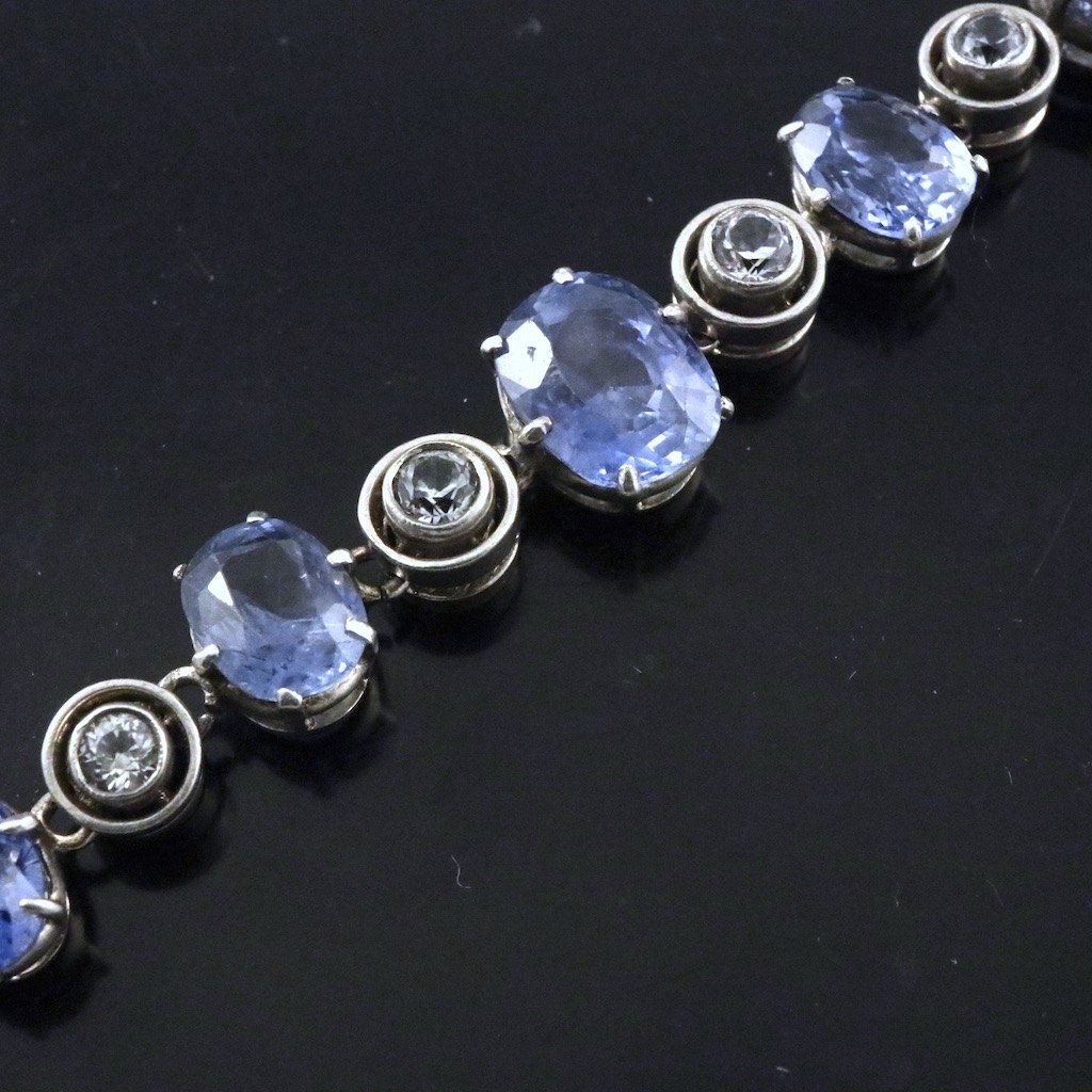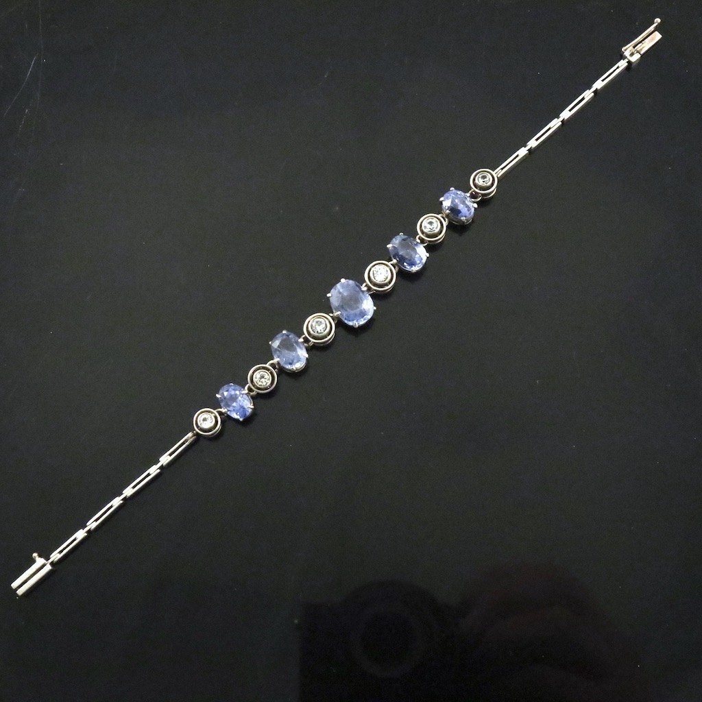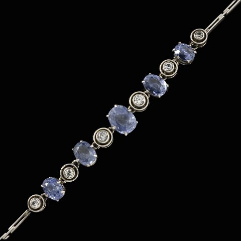 Armbånd 14k hvidguld med diamanter og Ceylonsafirer.
