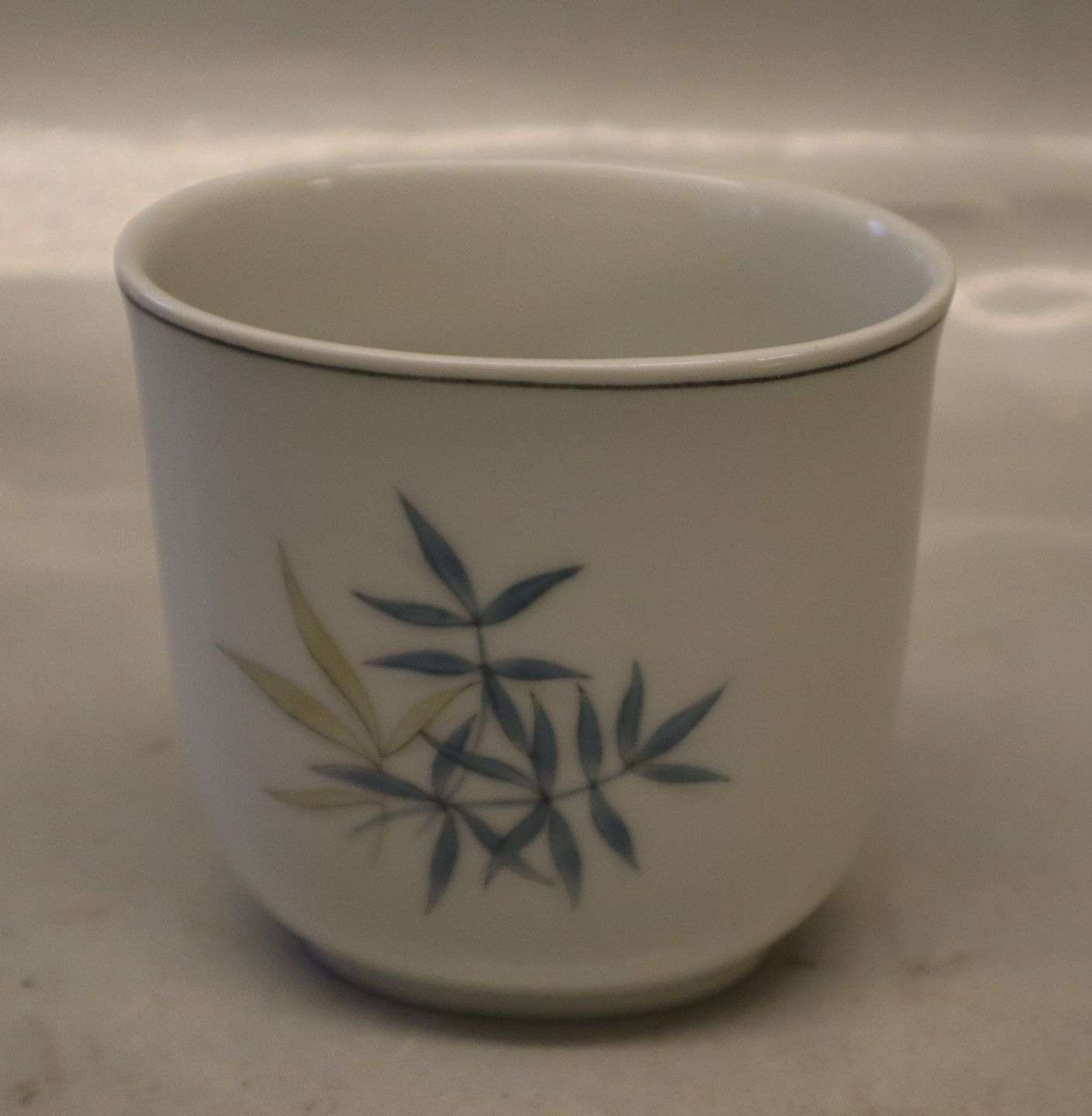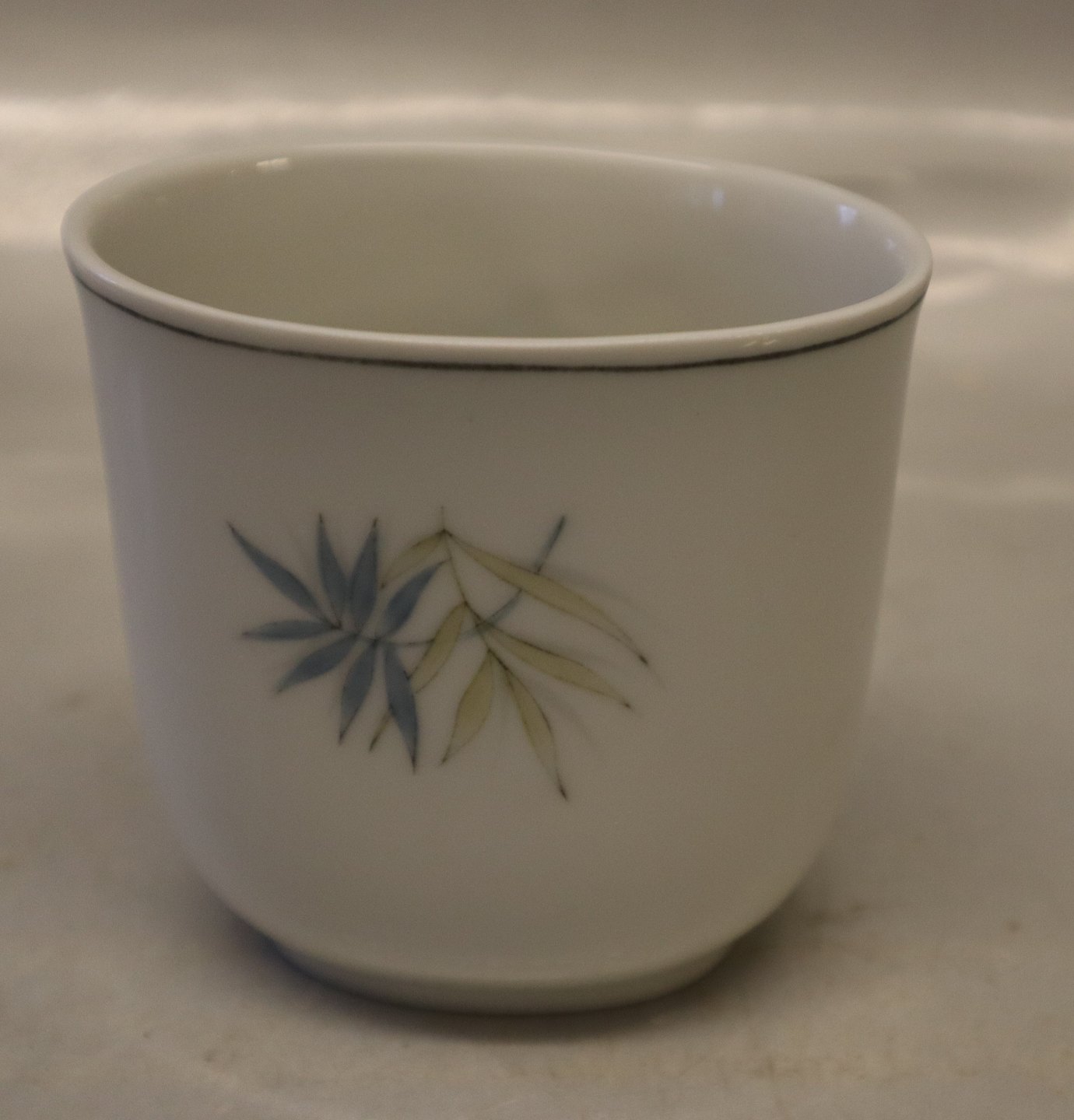 219 Vase 7 cm (676) APOLLO: Hvidt porcelæn, blå og guldgrønne blade, form 676 Design Ebbe Sadolin Bing & Grøndahl I fin og hel stand.