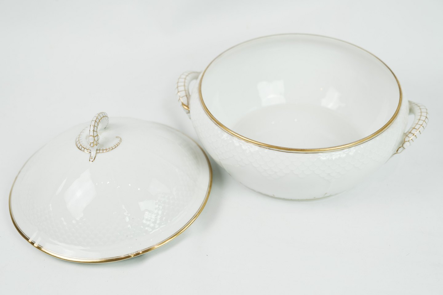 En låg terrin fra Bing og Grøndahl med mønstret Hartmann pryderet med håndtag af søhest.