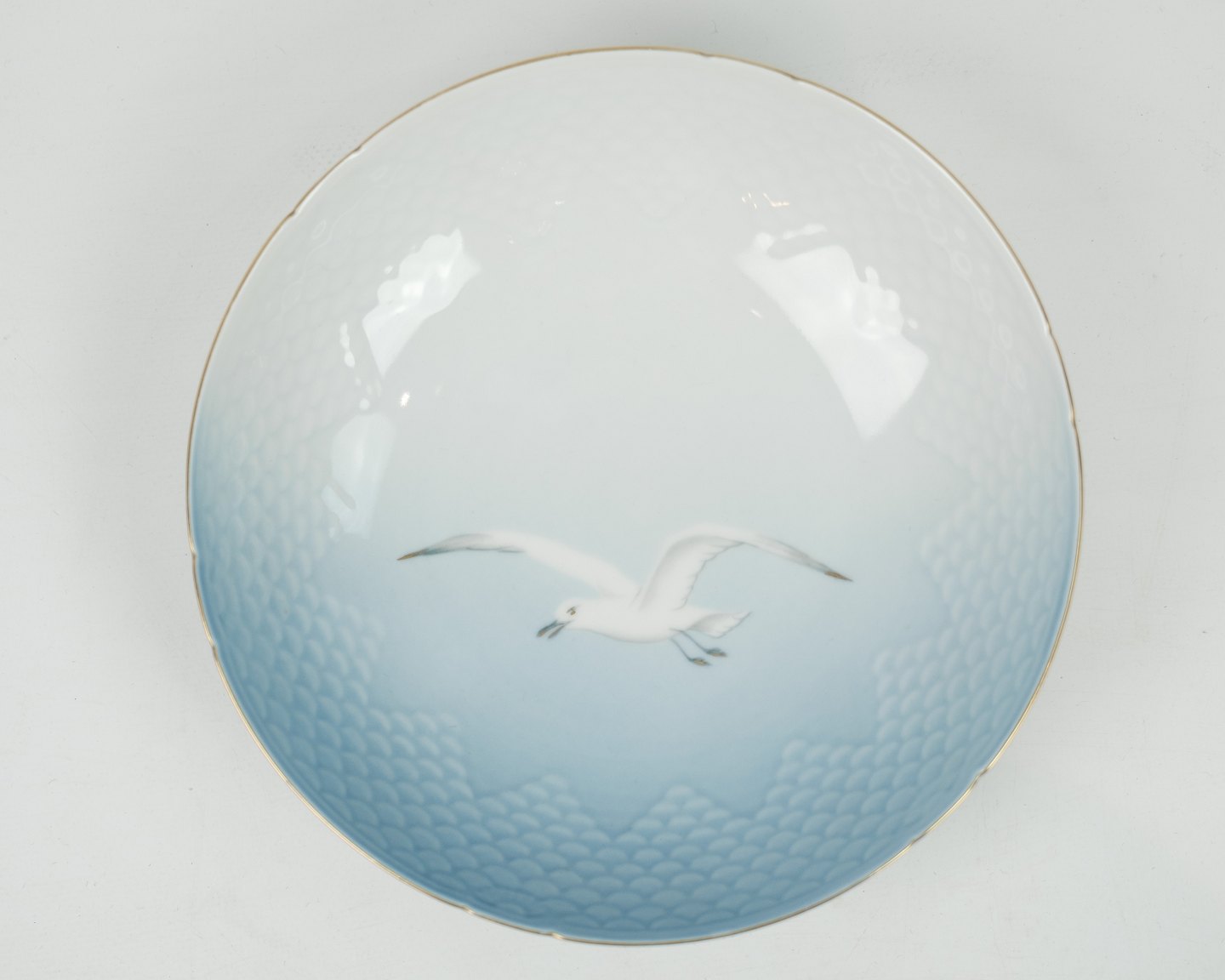 Rund skål fra Bing & Grøndahl fra stellet måge med guldkant.
